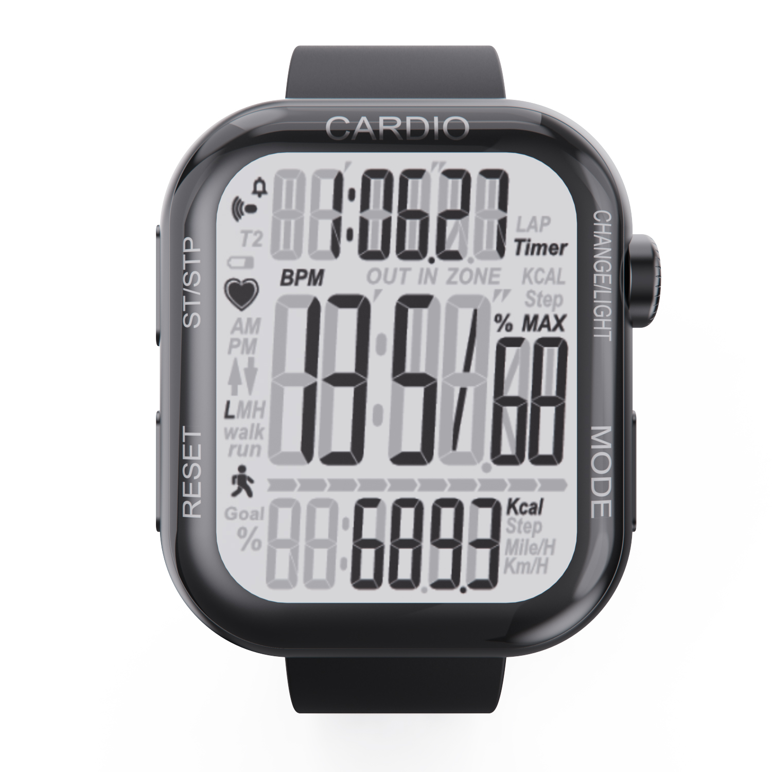 Кардиомонитор постоянно отслеживает текущую частоту сердечных сокращений (ЧСС). Пользователь может установить верхний и нижний предел пульсовой зоны, при выходе за которые устройство выдает предупреждение.