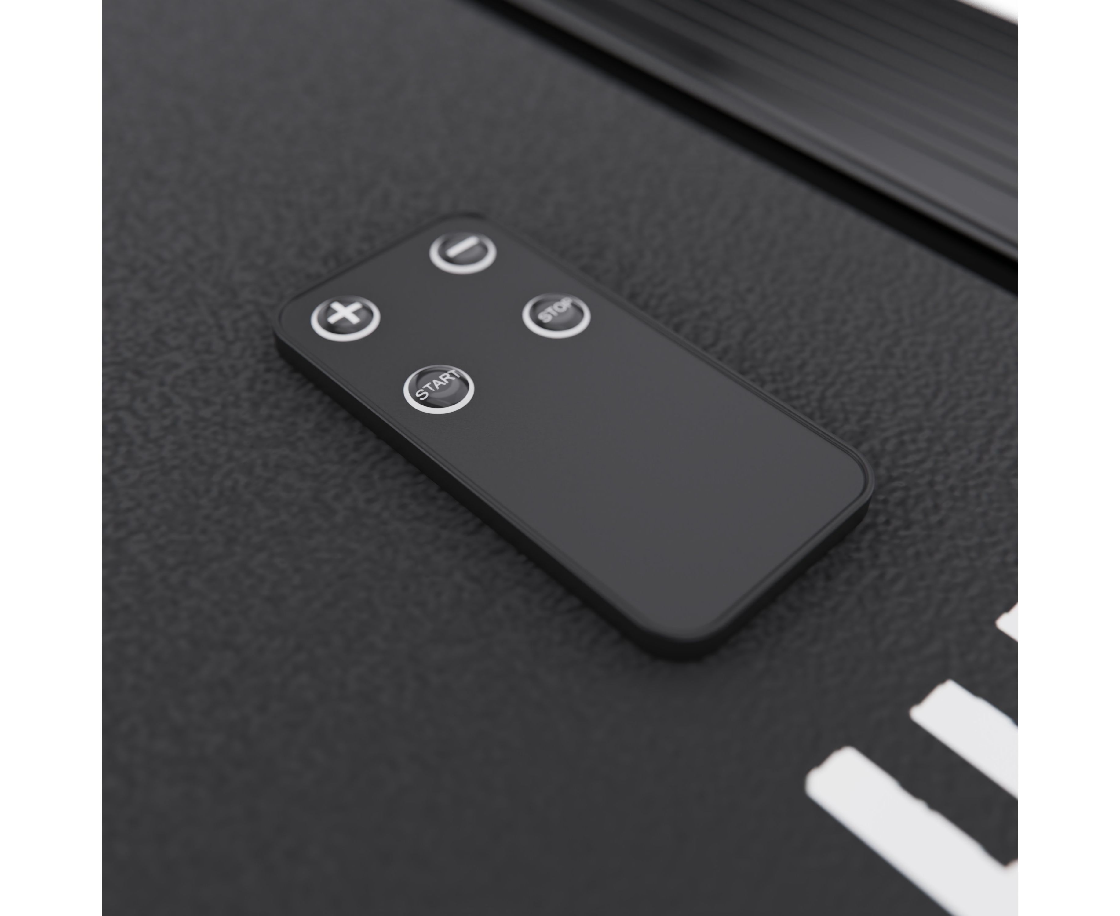На встроенном LED-дисплее отображаются основные параметры тренировки: время, скорость, пройденная дистанция и количество калорий, что позволяет эффективно контролировать процесс занятий. Управление осуществляется с помощью пульта дистанционного управления, с которого можно включать и выключать питание, а также изменять скорость без остановки тренировки.