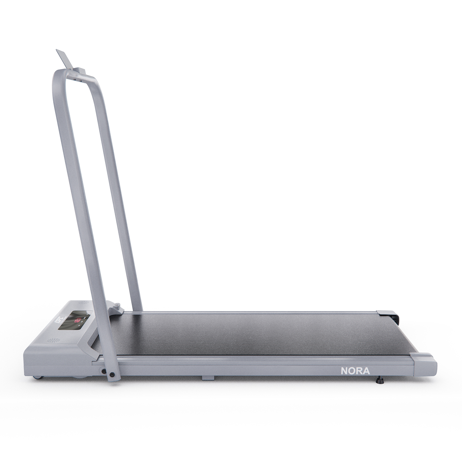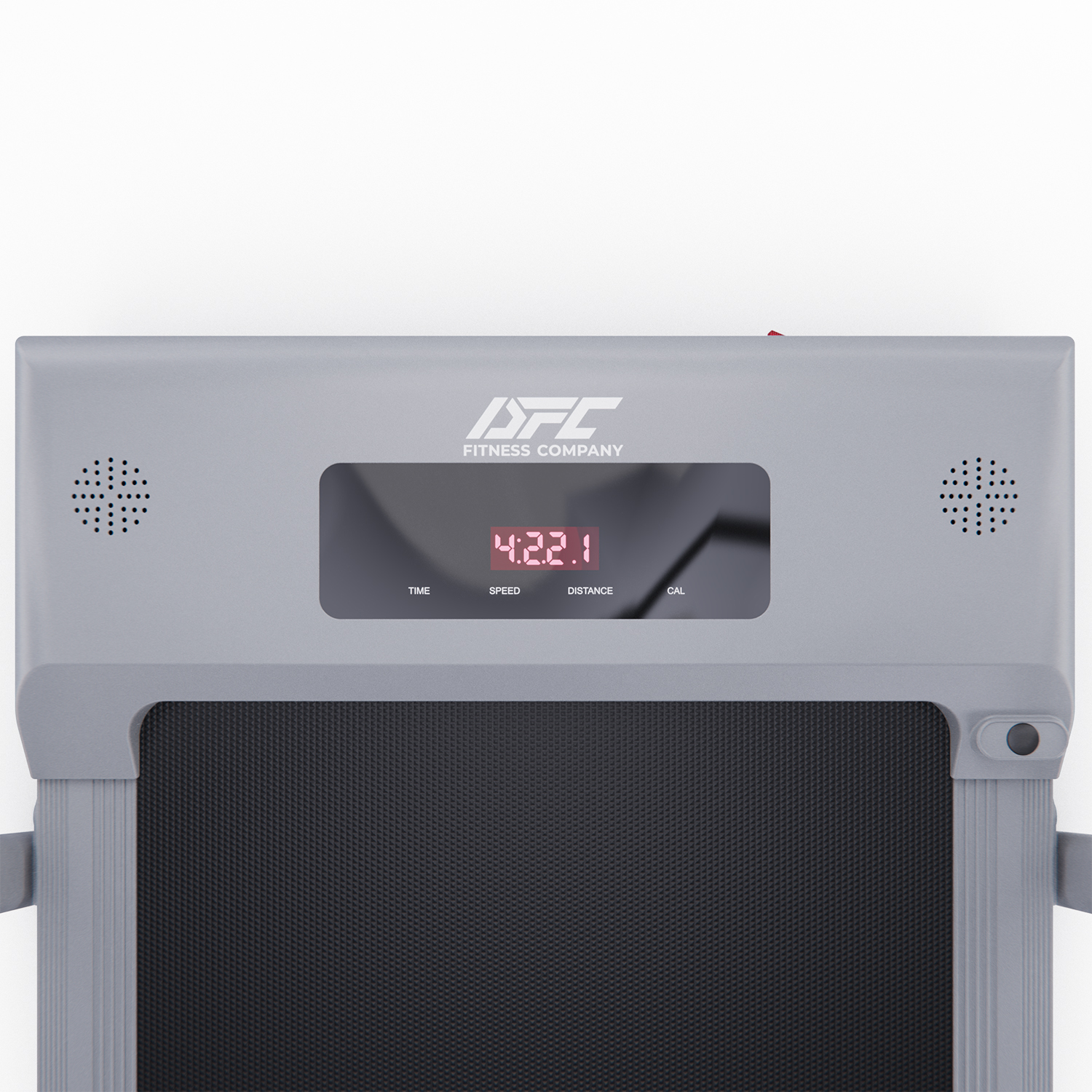 Электрическая беговая дорожка DFC NORA – это складная модель, которая идеально подходит для домашнего использования благодаря компактным размерам в сложенном виде (122 x 50 x 12 см) и транспортировочным роликам.
