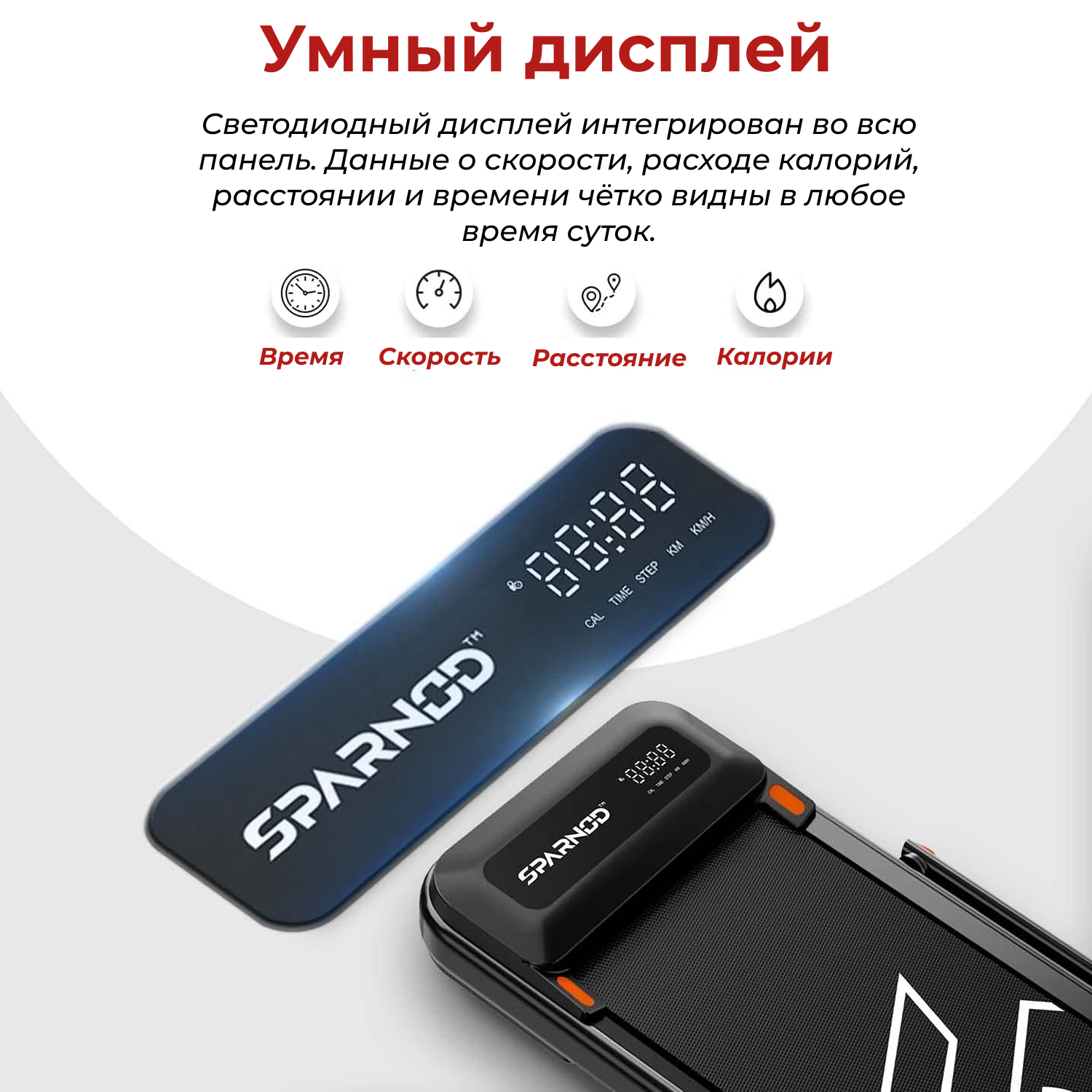 На встроенном LCD-дисплее отображаются все важные параметры тренировки: скорость, время, пройденная дистанция и количество сожжённых калорий. Это поможет вам следить за своими результатами и корректировать нагрузку по мере необходимости.