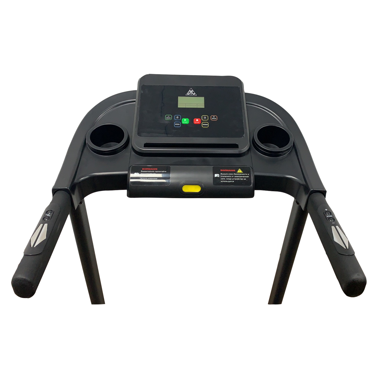 В этой модели беговой дорожки лаконично сочетается всё, что нужно для результативных и комфортных тренировок. Доступно 12 встроенных программ. На передней панели есть подставка под планшет и 2 подстаканника. Удобно держать рядом воду или спортивные напитки. На поручнях расположены кнопки регулировки скорости и датчики измерения пульса. Все данные отображаются на табло. Всего доступно 10 скоростей. Шаг изменения скорости беговой дорожки 0,1 км/ч.