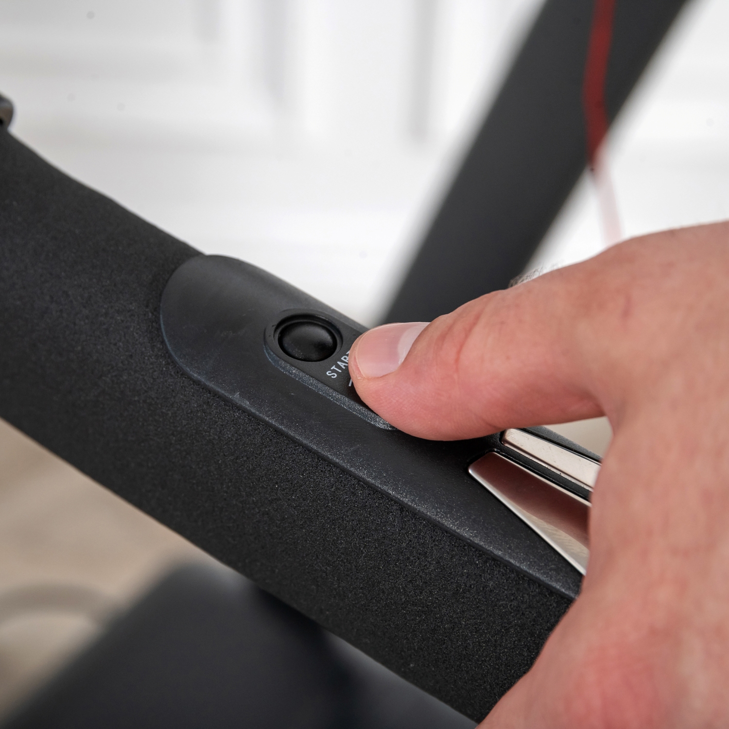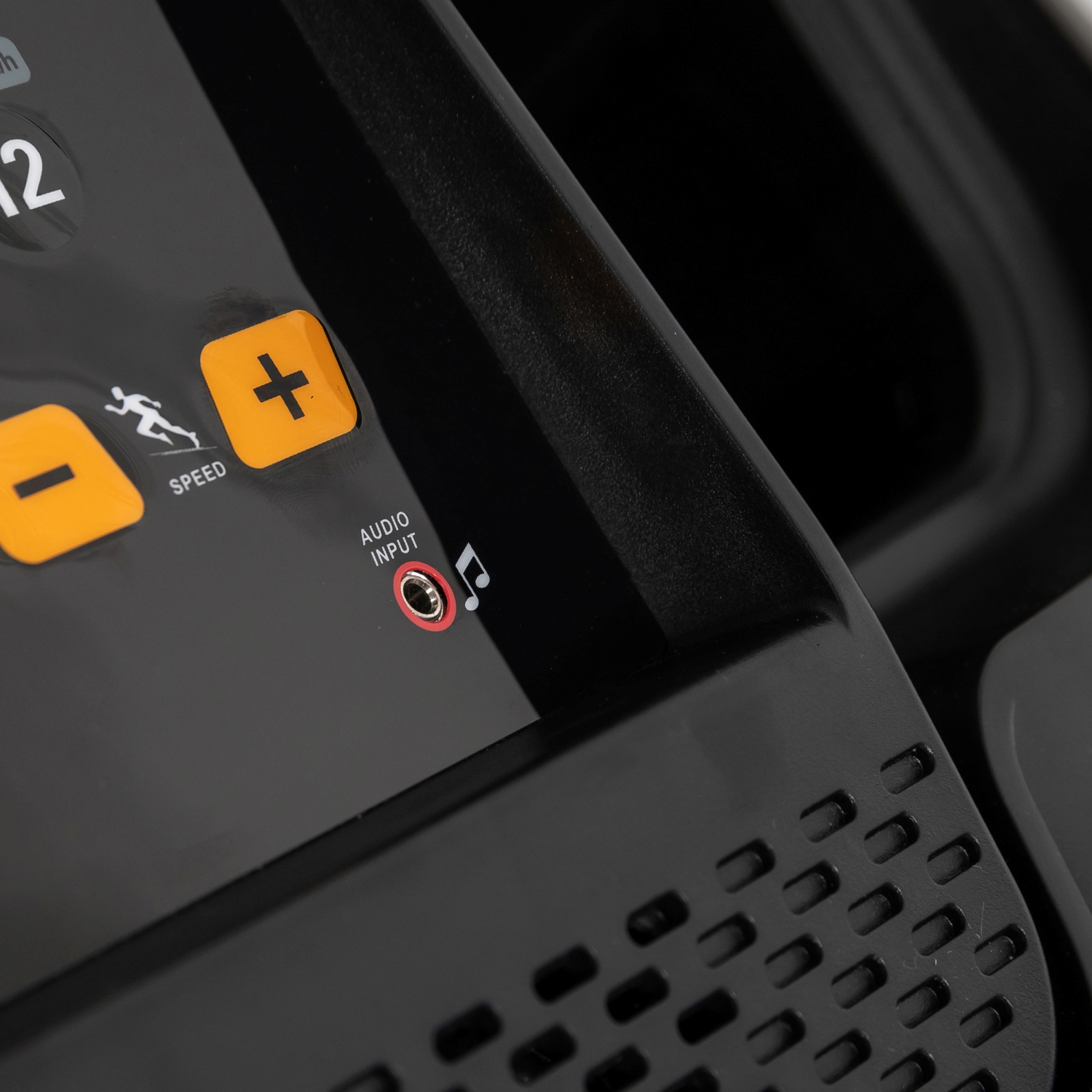 На поручнях так же расположены "быстрые кнопки" - это кнопки запуска и остановки бегового полотна, а так же кнопки изменения скорости. Это позволяет не отрывать руки с поручней во время занятий не тренажере.