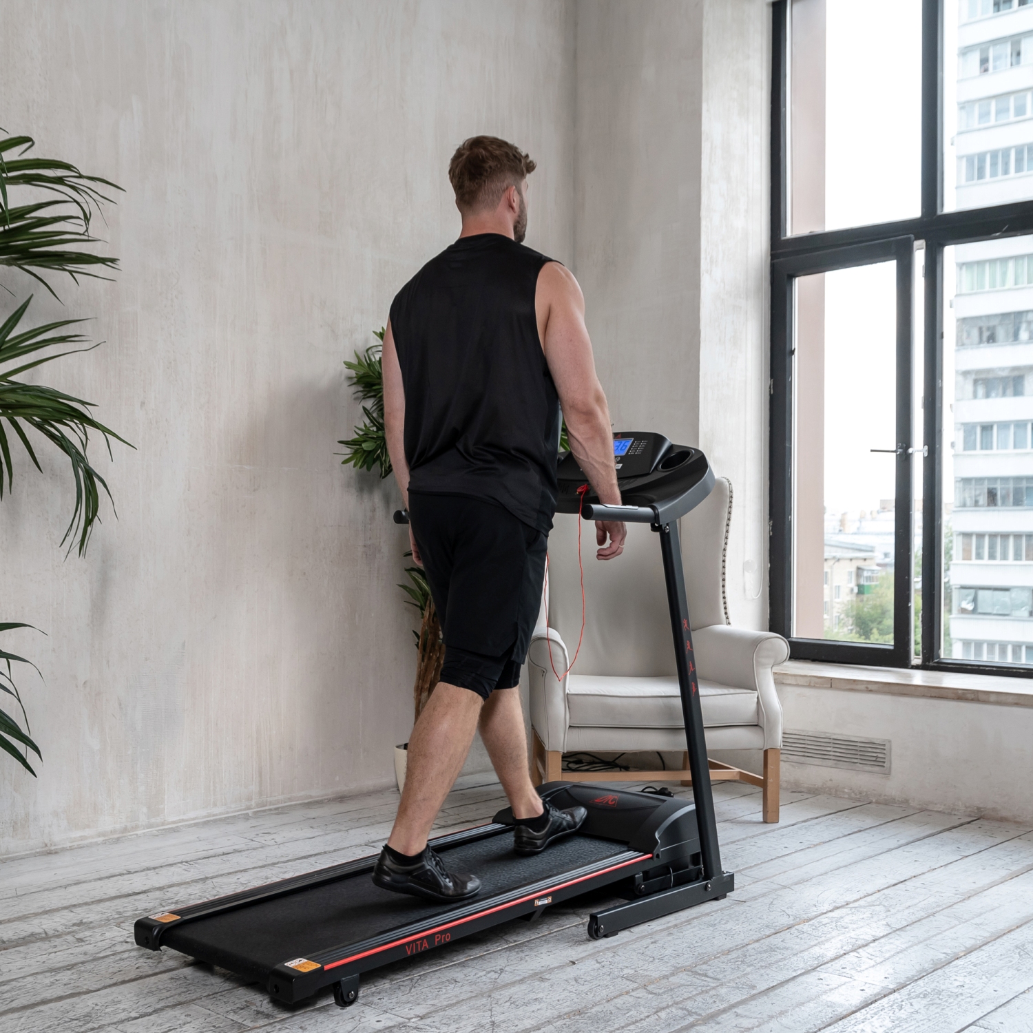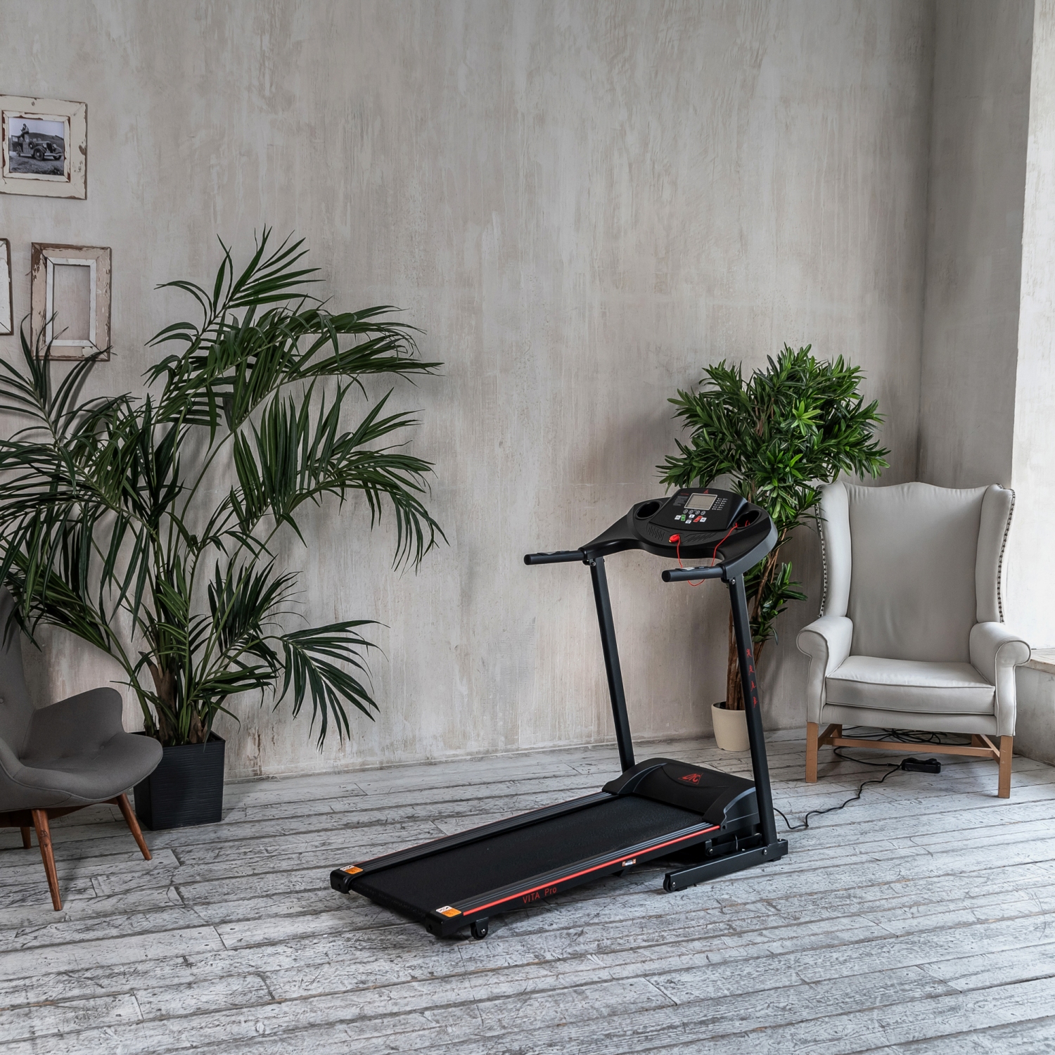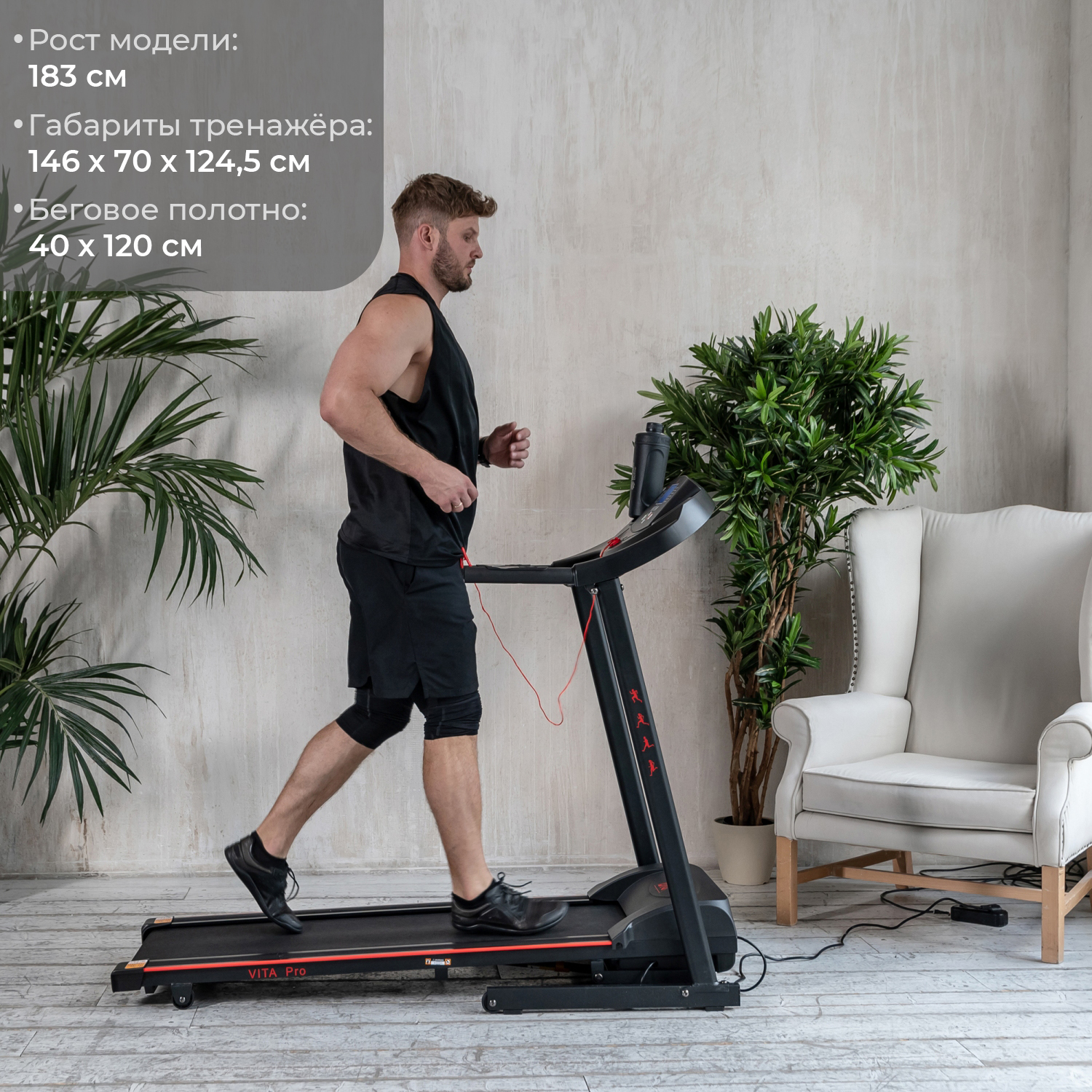 Электрическая беговая дорожка для занятий дома. Тренажер начального уровня с мотором мощностью 1,5 л.с. Шаг изменения скорости дорожки 0,1 км/ч.