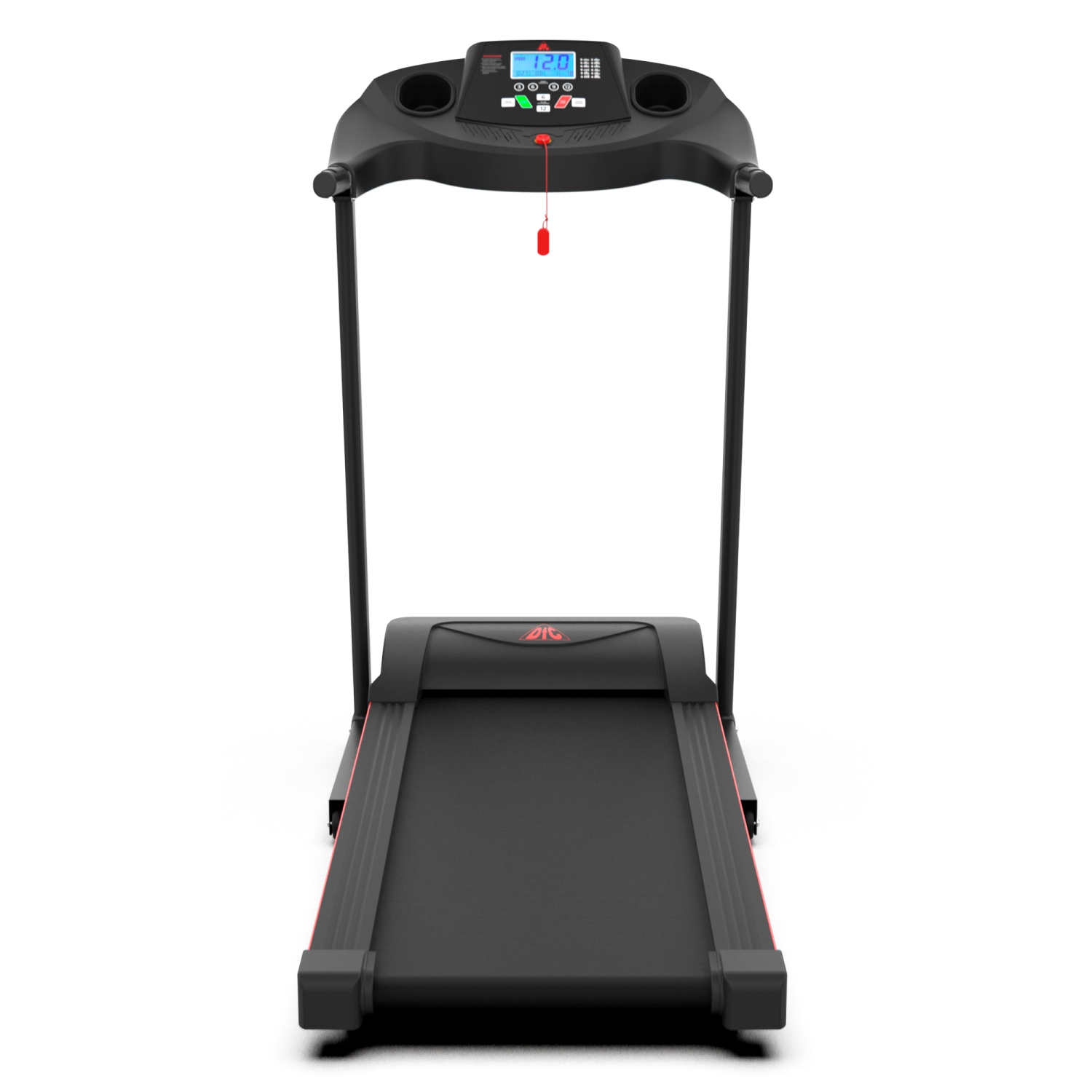 На поручнях расположены датчики пульса и кнопки управления. Для точности измерения частоты сердечных сокращений (ЧСС) во время тренировки рекомендуем приобрести отдельно набор DFC W117: кардиопояс + часы - монитор. Показания консоли: скорость, время, расстояние, калории, пульс.