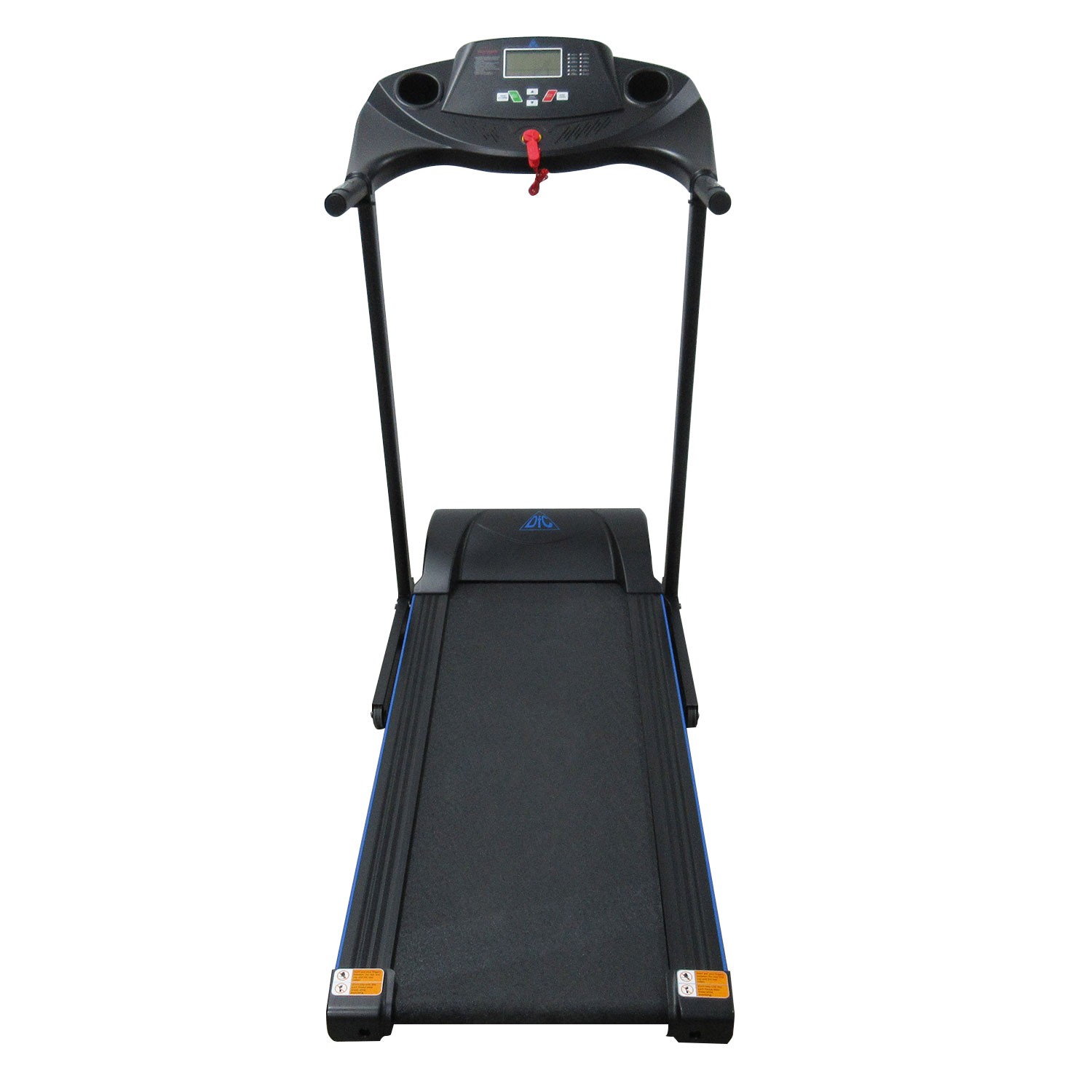 На поручнях расположены датчики пульса. Для точности измерения частоты сердечных сокращений (ЧСС) во время тренировки рекомендуем приобрести отдельно набор DFC W117: кардиопояс + часы - монитор. Показания консоли: скорость, время, расстояние, калории, пульс.