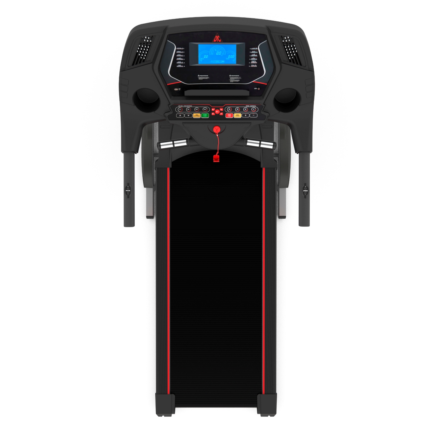 Два комплекта встроенных в поручни датчиков пульса позволят следить за частотой сердечных сокращений. Такие датчики имеют определенную погрешность. Для точности показаний рекомендуем приобрести нагрудный пояс с монитором в форме часов DFC W117. Показания консоли: скорость, время, расстояние, калории, пульс.