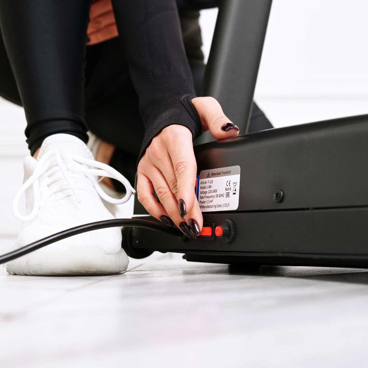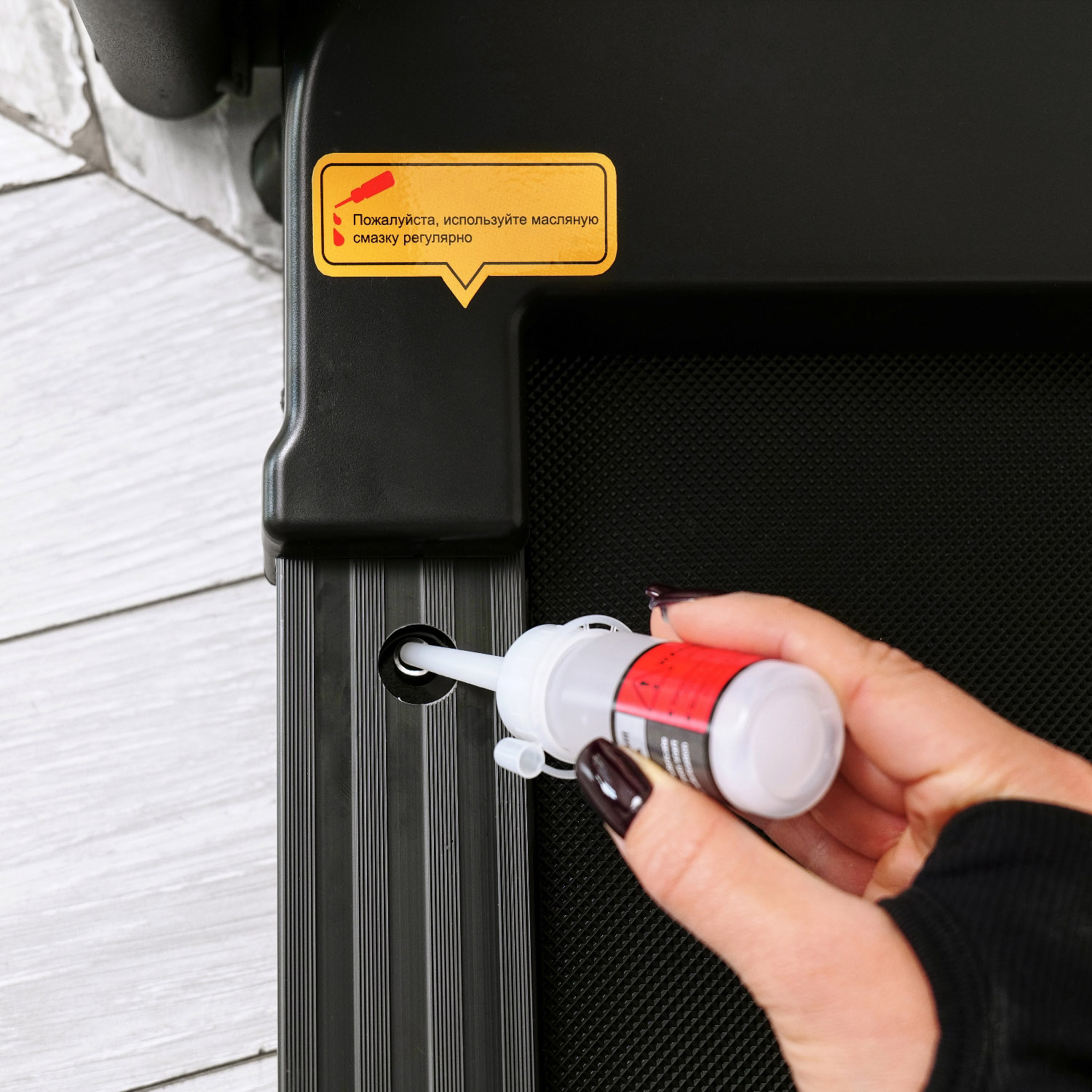 Двигатель мощностью 1,5 л/с и скорость от 1 до 10 км/ч обеспечивают комфортную и эффективную тренировку. На левой подножке располагается отверстие для заливки смазки.