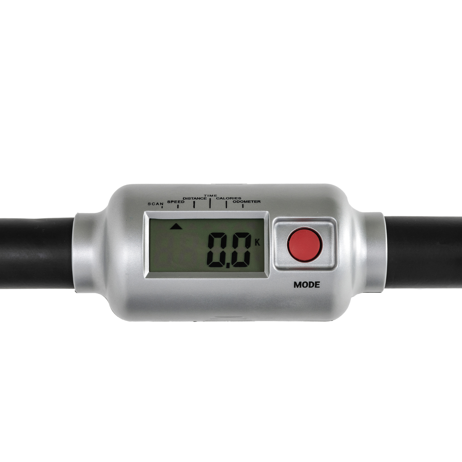 Интуитивно понятная консоль показывает: время, расстояние, калории, скорость, сканирование.