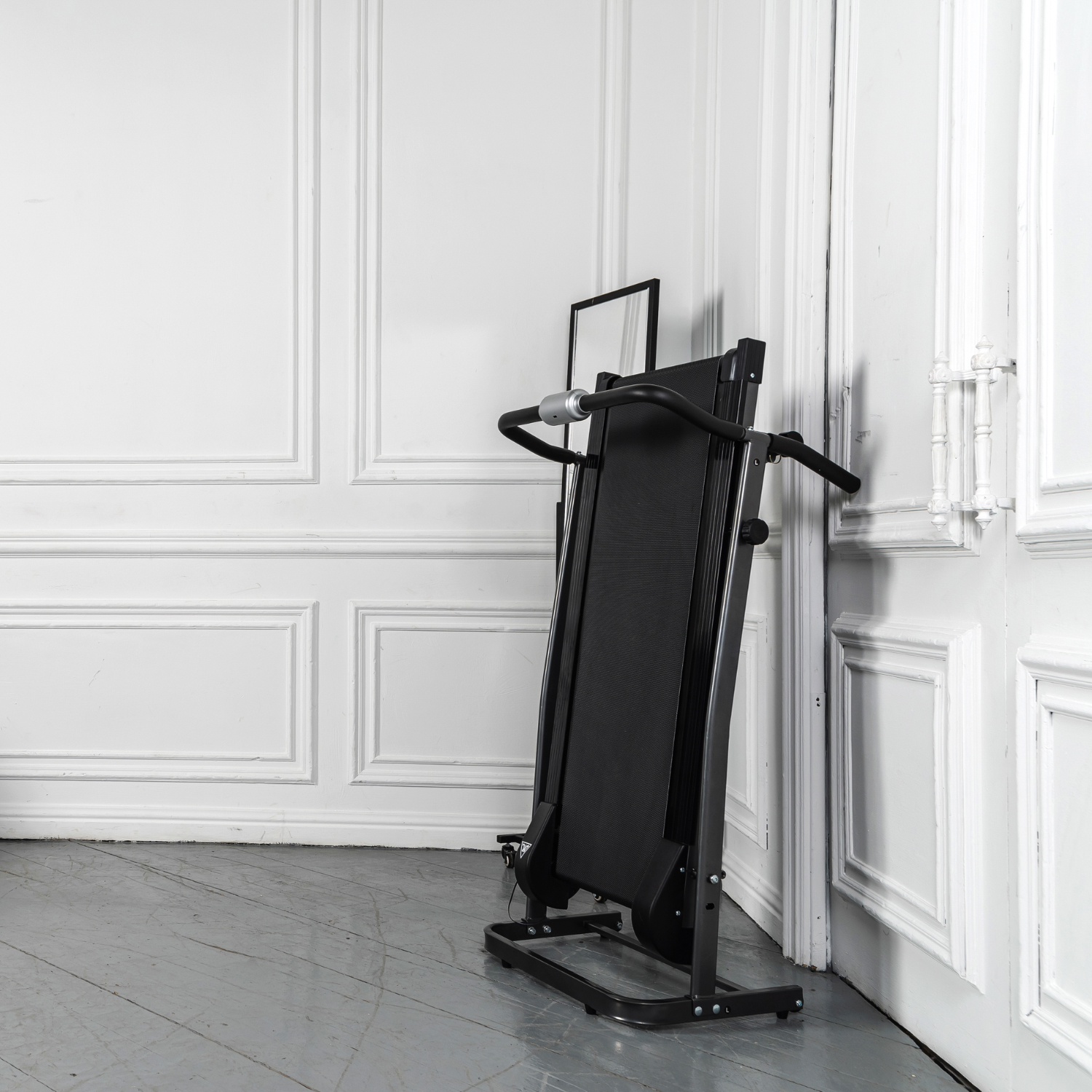 Складная конструкция дорожки поможет сэкономить место в комнате после тренировки.