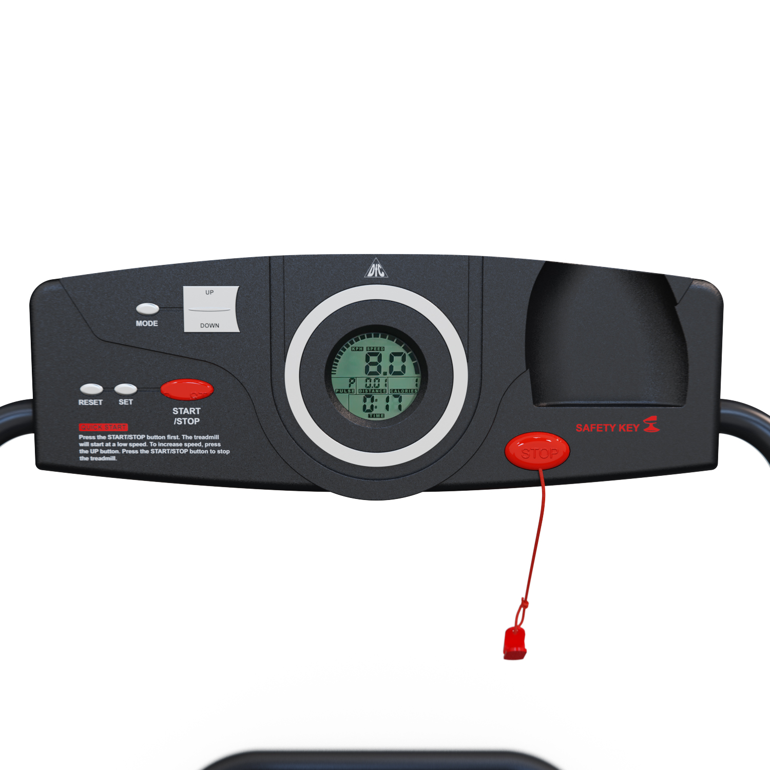Ключ безопасности с клипсой для крепления к одежде поможет выключить дорожку в случае экстренной необходимости.