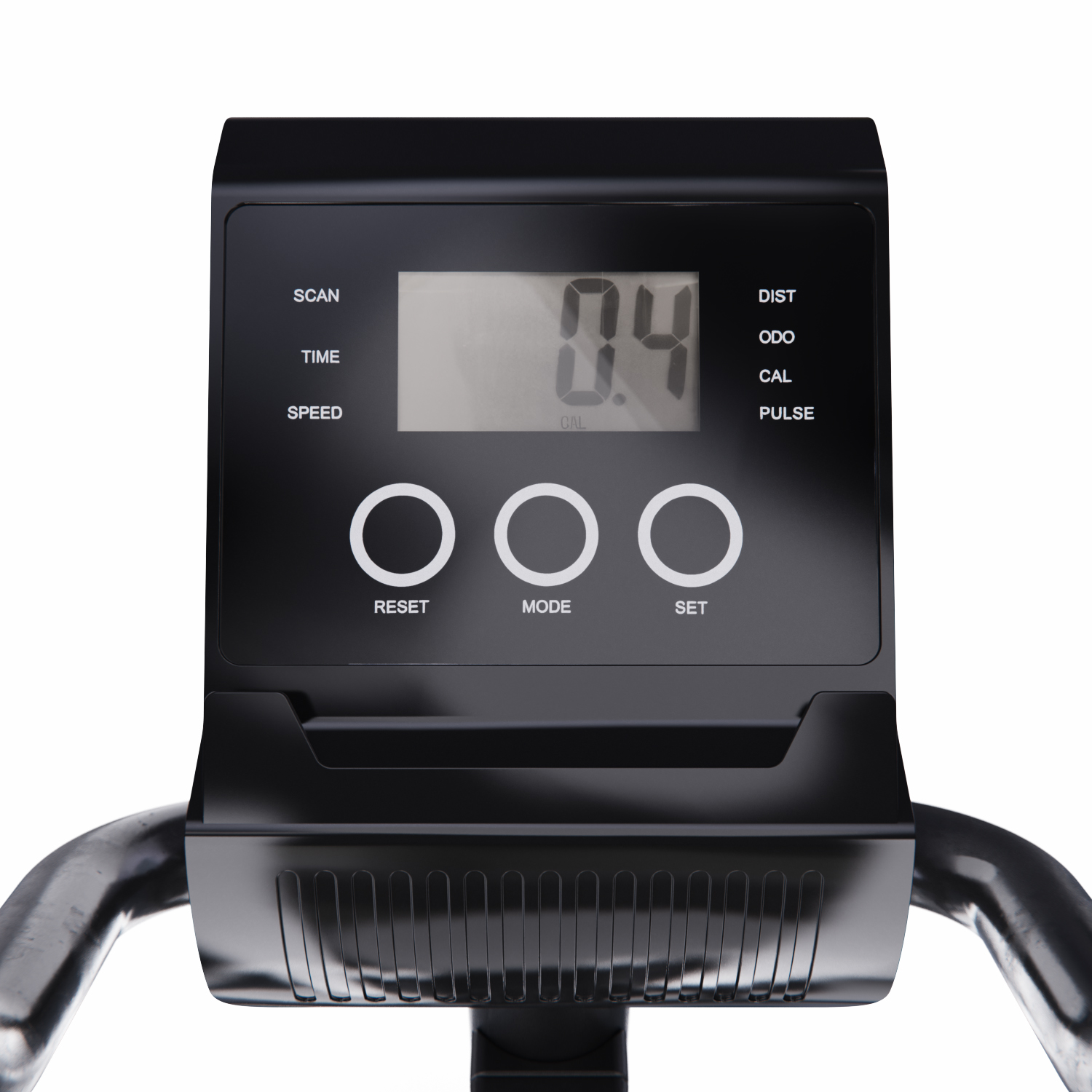 Монохромный LCD-дисплей отображает скан, время, расстояние, калории, скорость, пульс и общую дистанцию. Сенсорные датчики на поручнях позволяют контролировать ваш пульс во время тренировки.