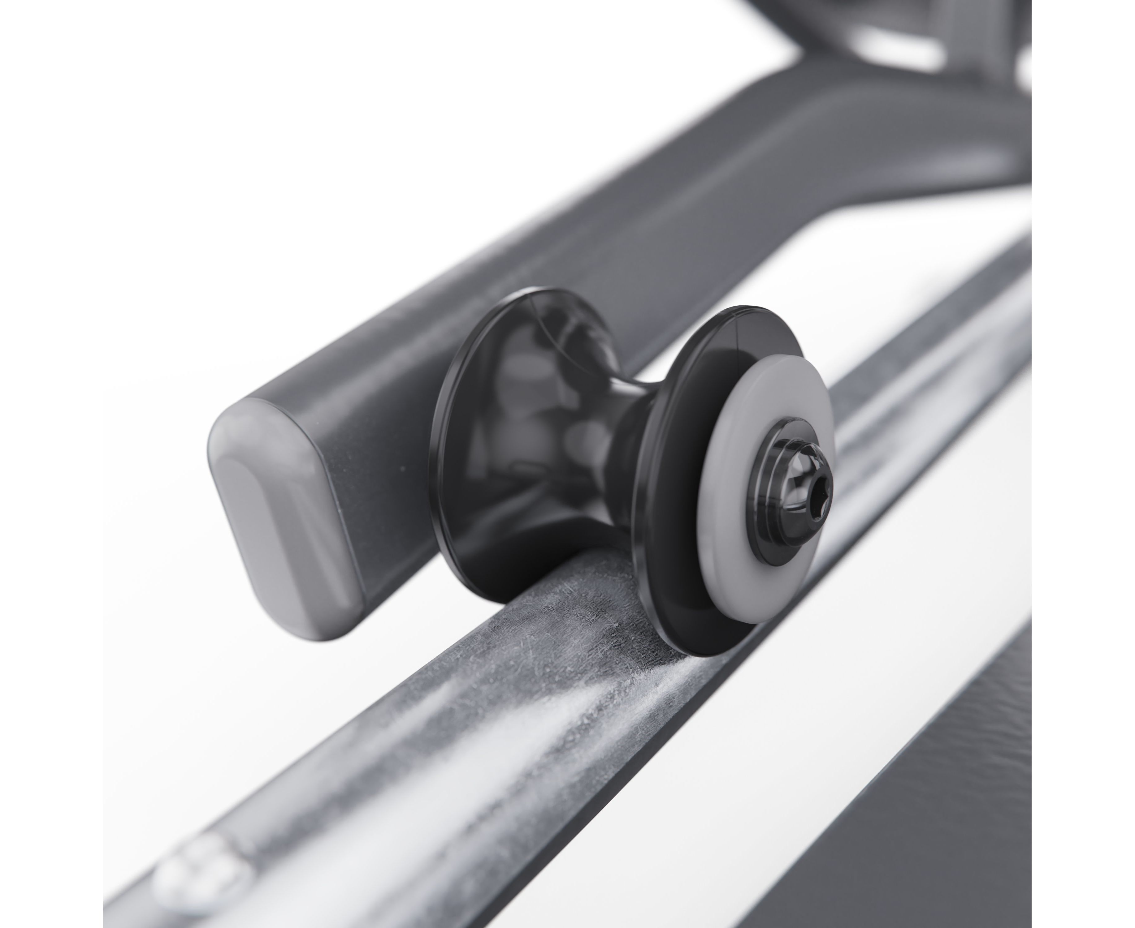 Для устойчивости тренажёр оснащён компенсаторами неровности пола, благодаря которым он надёжно стоит даже на неидеальной поверхности. Встроенные транспортировочные ролики позволяют легко переместить тренажёр с места на место, что особенно удобно при использовании в ограниченном пространстве.
