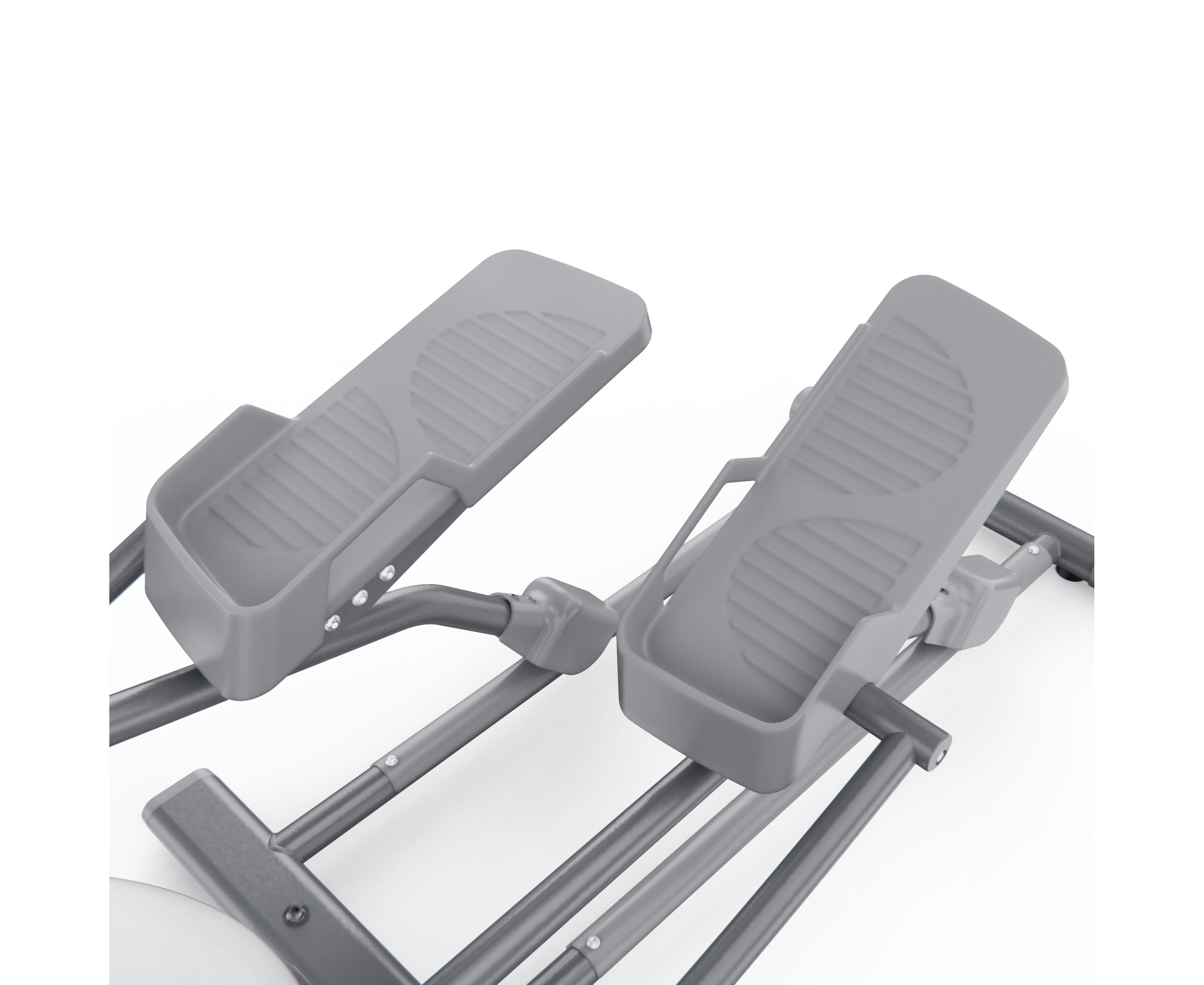 Нескользящие педали обеспечивают отличное сцепление даже при интенсивных занятиях. Они просторные, устойчивые и предотвращают проскальзывание стоп, обеспечивая дополнительную безопасность. Длина шага составляет 51 см, что позволяет комфортно тренироваться как высоким, так и невысоким пользователям, делая движение естественным и эффективным.