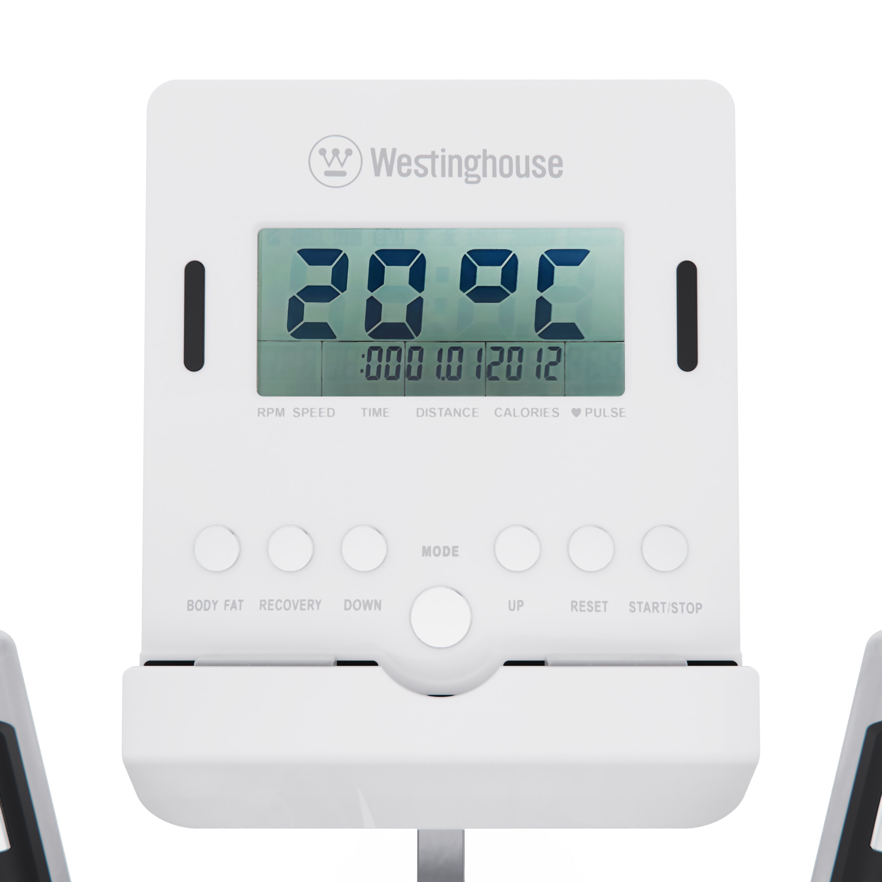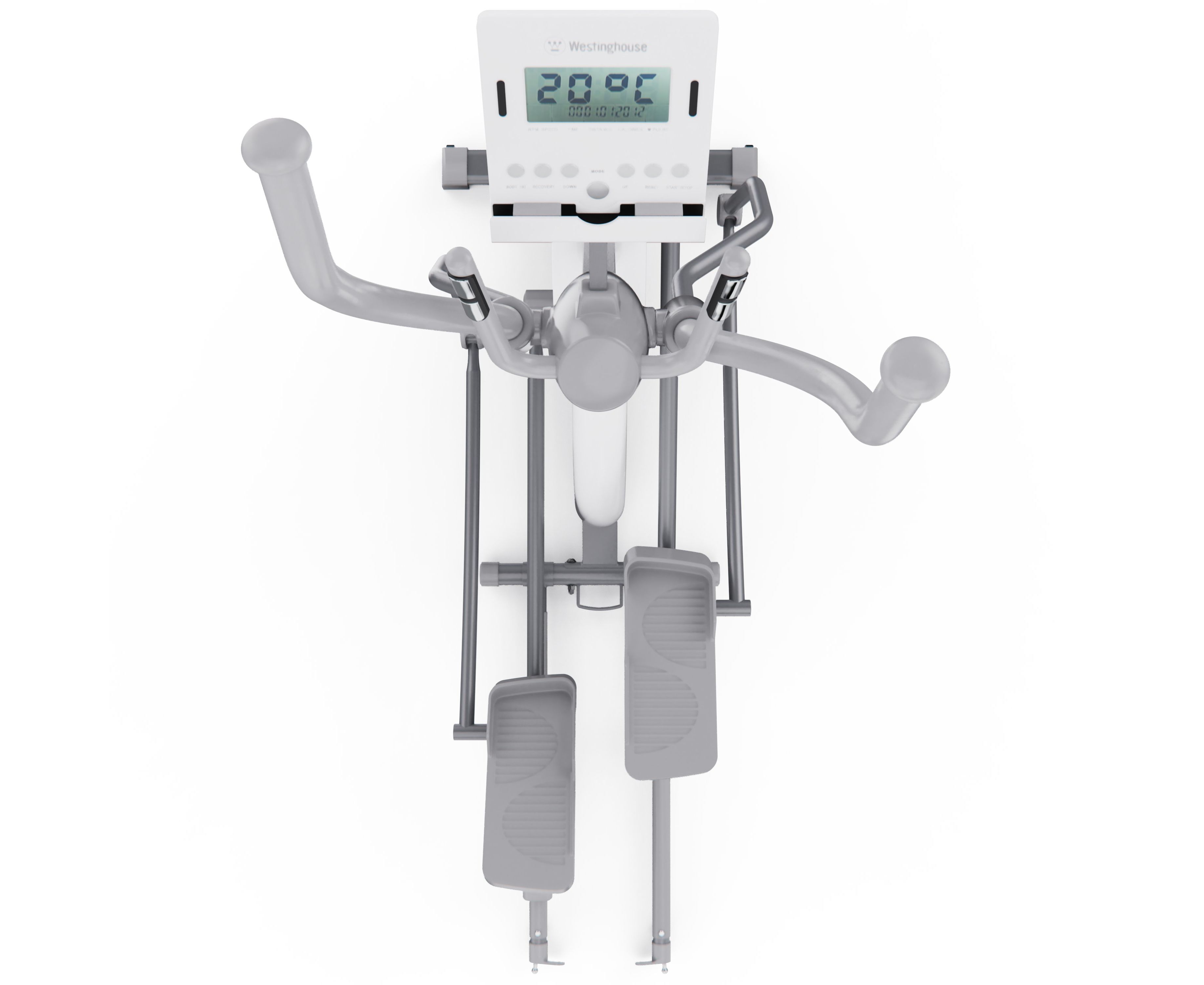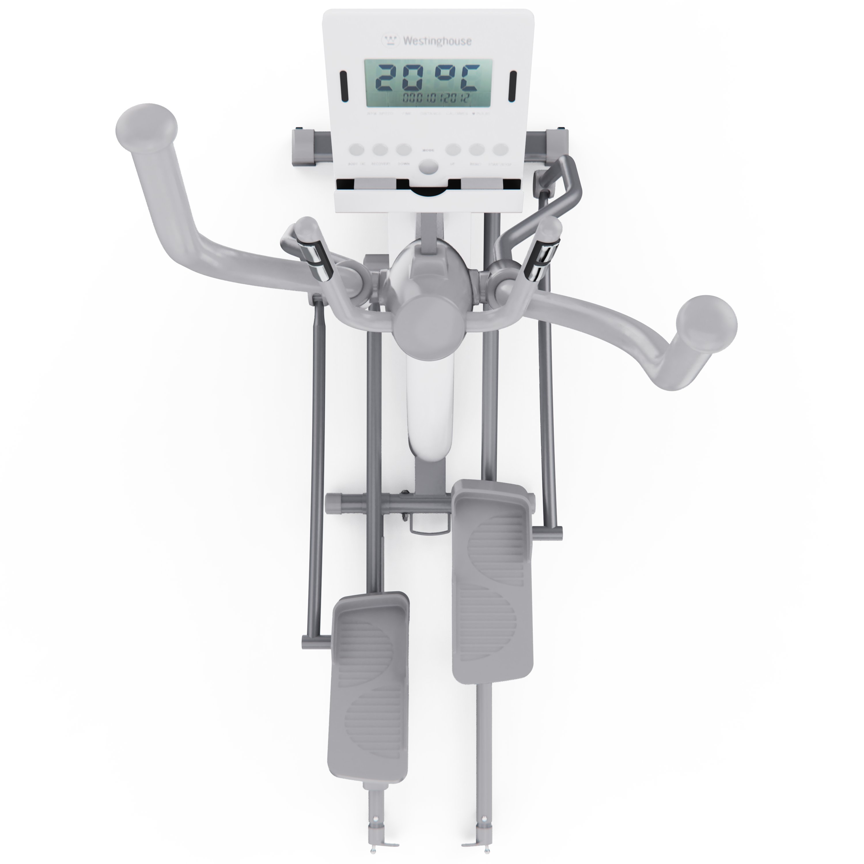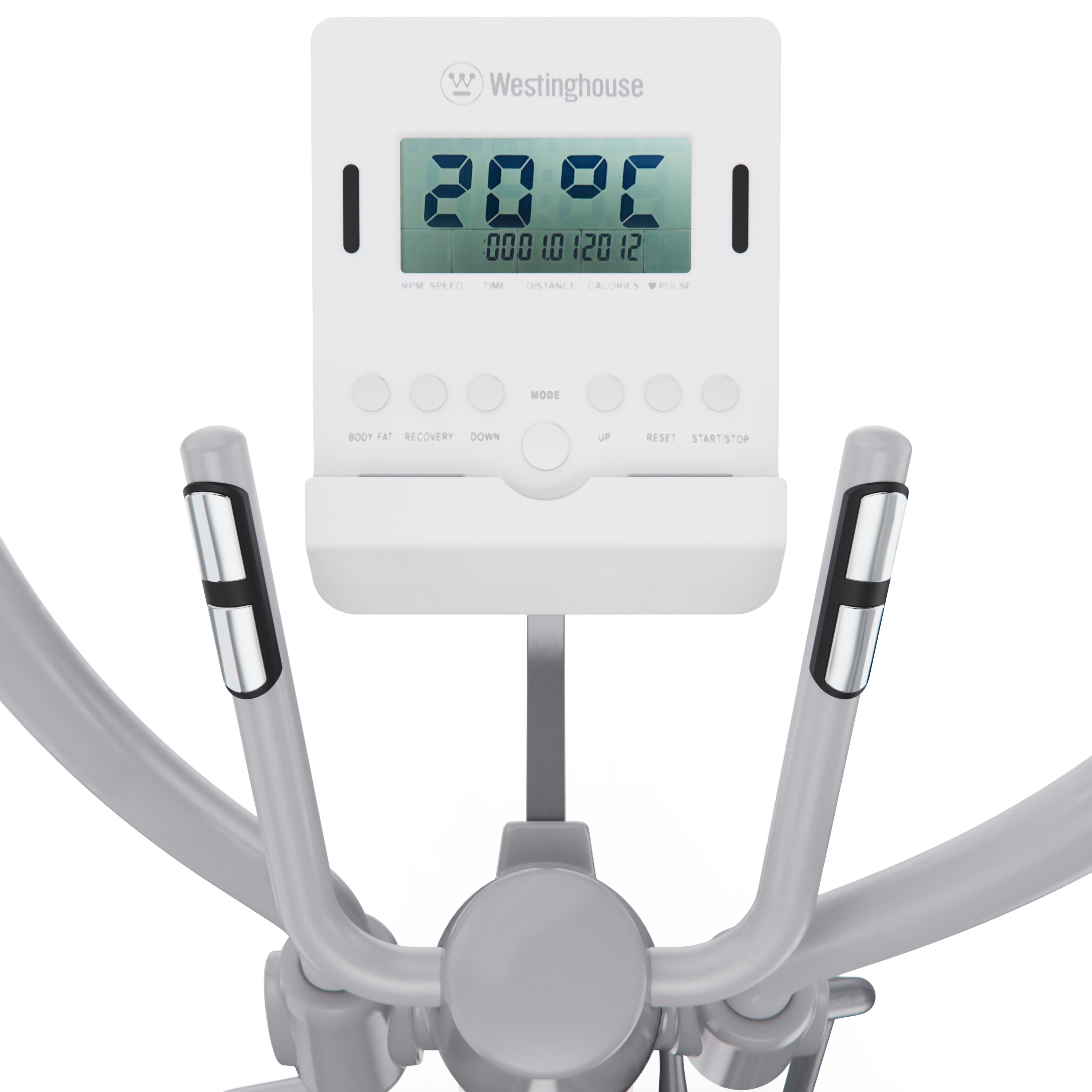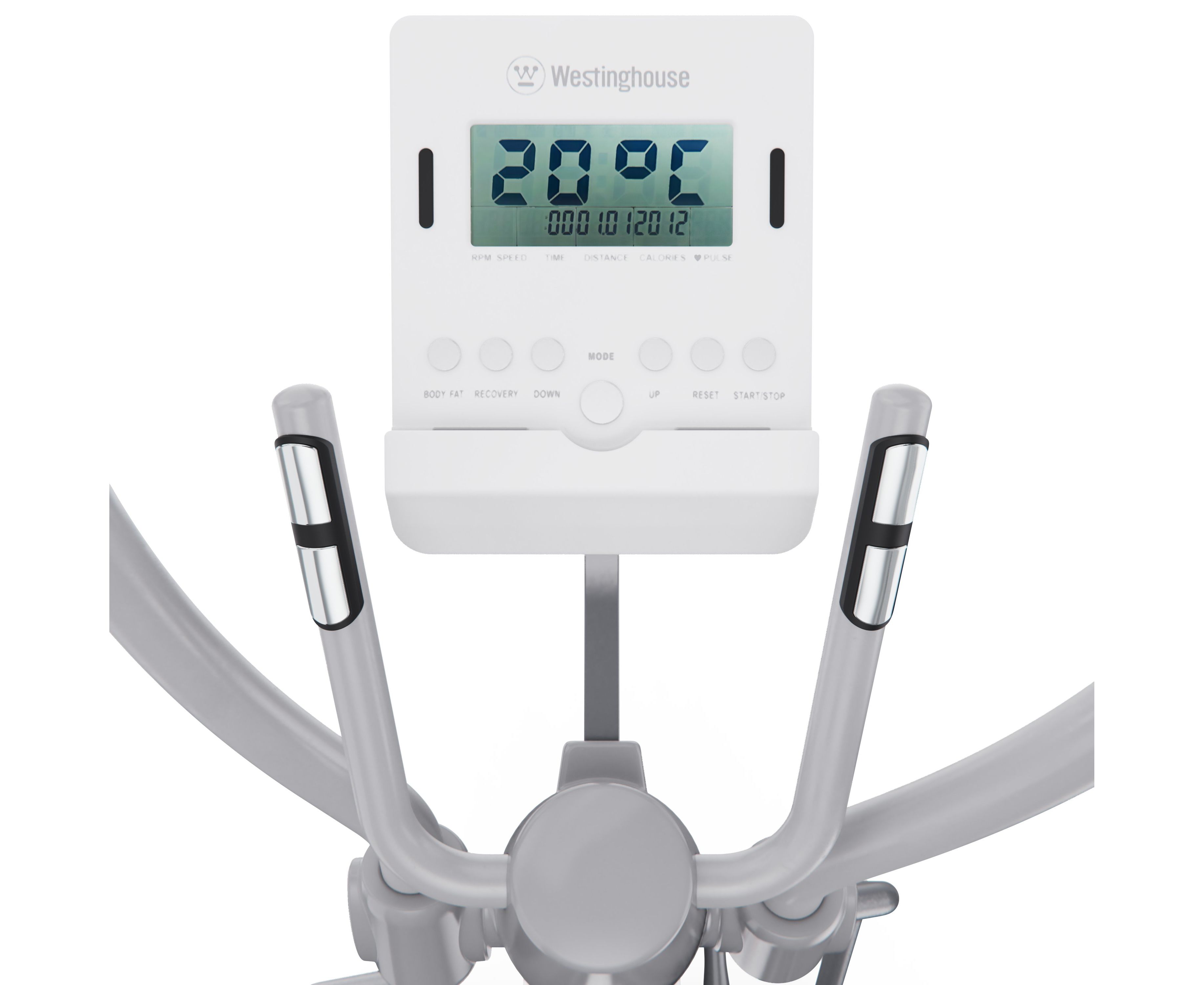 Все данные отображаются на LCD-дисплее, где вы можете отслеживать ключевые параметры: время, дистанция, калории, пульс, скорость, темп и режим сканирования. Для удобного контроля за состоянием организма во время тренировки на поручнях установлены сенсорные датчики пульса. В комплекте с эллиптический тренажёром идут батарейки типа АА (2 шт.).