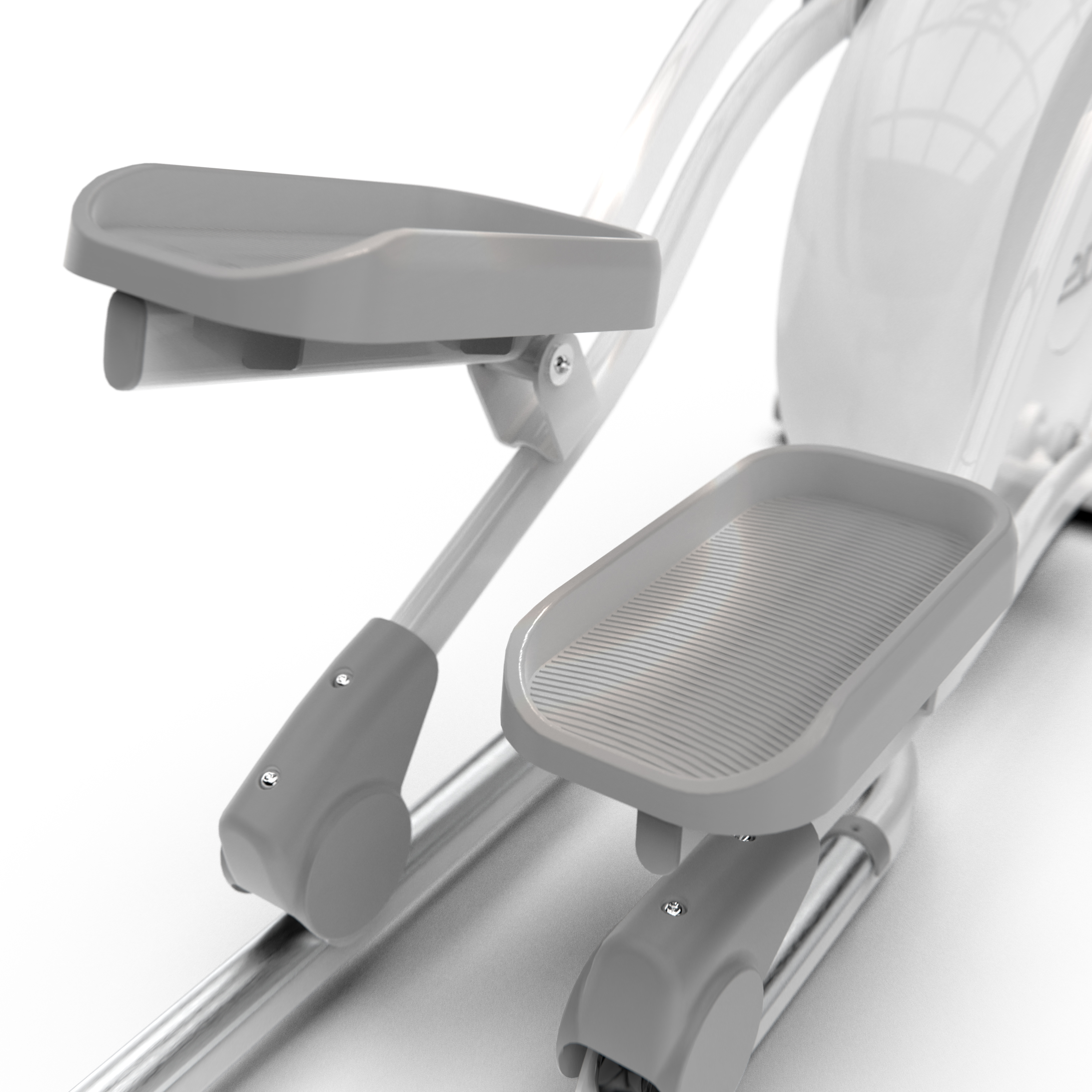 Эллипсоид выдерживает вес пользователя до 120 кг, сохраняя при этом компактные габариты. Тренажёр оснащён транспортировочными роликами, благодаря которым его легко переместить в любое место в комнате после завершения треннировки.