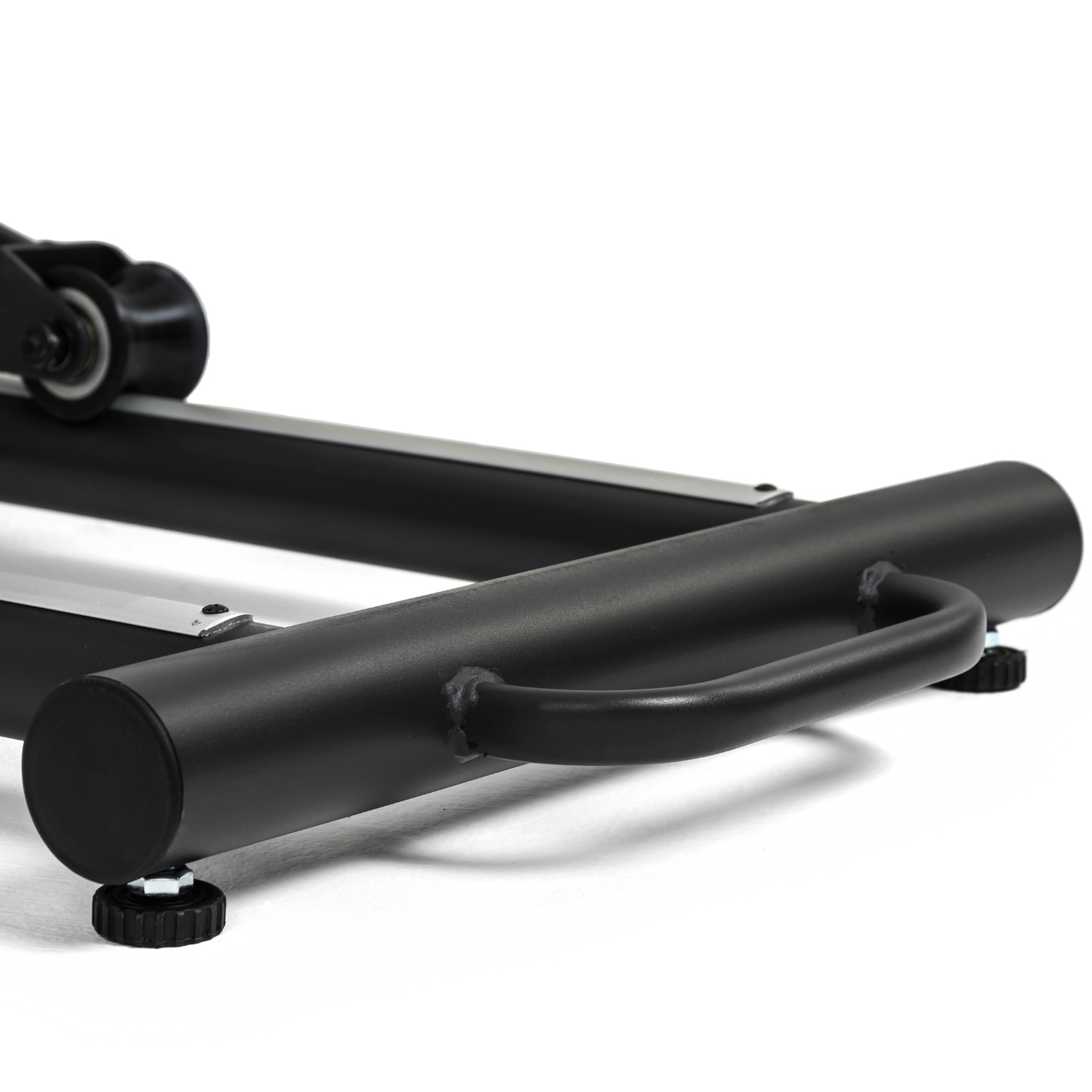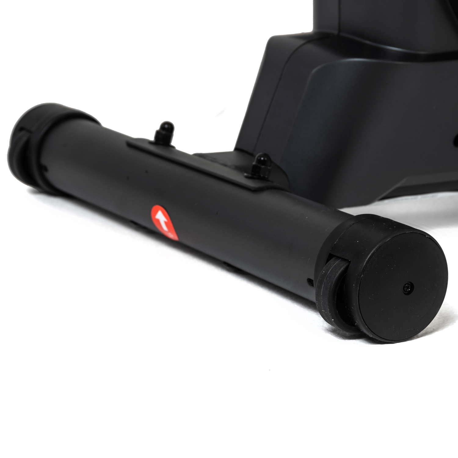 Благодаря небольшим размерам и наличию съёмных частей, тренажёр удобно хранить в квартире или доме. Для удобства транспортировки предусмотрены колёсики в передней части основания и ручка — на задней. Для перемещения достаточно поднять заднюю часть вверх.