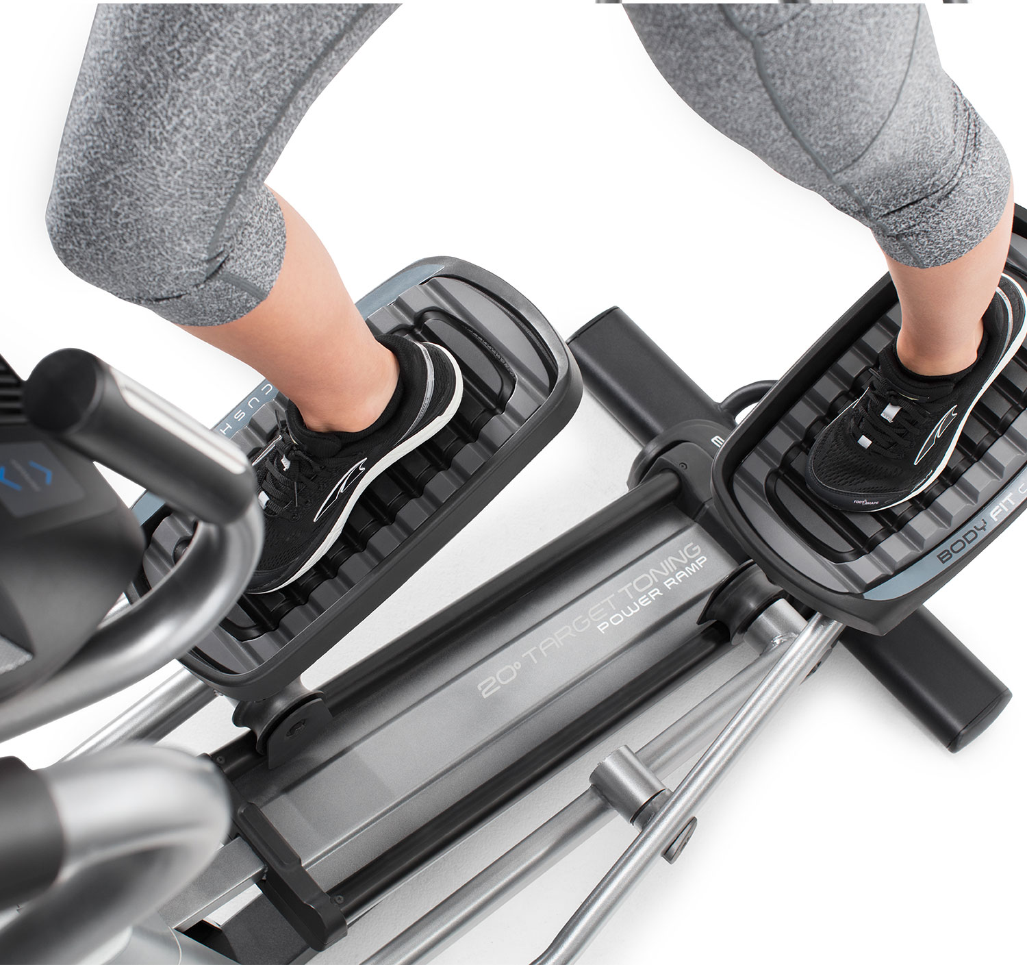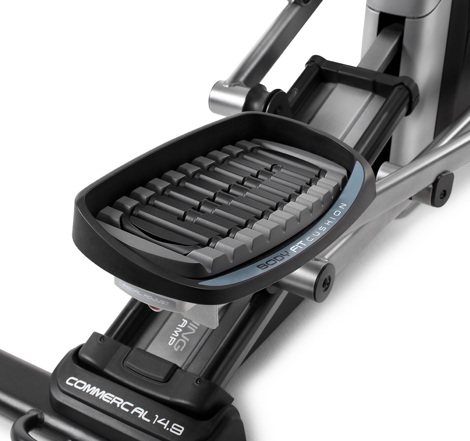 NordicTrack серии Commercial идеально подходит для тех, кто серьезно относится к своим фитнесс - тренировкам. Он специально сконструирован для результативных, стабильных и комфортных занятий. Встроенный функционал модели Commercial C14.9 позволит настроить параметры тренажары для достижения конкретных результатов. Консоль управления тренажера в новом дизайне оснащена цветным сенсорным HD дисплеем размером 10". С помощью кнопок управления 1-Touch™ вы можете быстро отрегулировать угол наклона, длину шага или сопротивление. Фирменная система вентиляции AutoBreeze™ автоматически адаптирует скорость вентилятора к скорости тренировки. Контролировать пульс вы можете с помощью встроенных датчиков Dual EKG™, или нагрудного кардиопояса, который входит в комплект поставки. Педали с мягкими рифленными вставками Body Fit Cushion и регулировкой угла наклона в 3 положениях позволят вам выбрать на тренажере удобное положение ног для продуктивной и продолжительной тренировки.