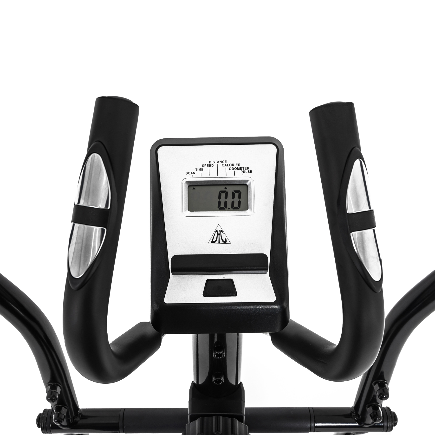 На руле расположены 2 датчика пульса с отображением показаний на дисплее консоли. Как правило, встроенные на тренажерах датчики имеют погрешность измерения. Поэтому для более точного определения частоты сердечных сокращений (ЧСС) рекомендуем использовать нагрудный кардиопояс с часами - монитором, модель DFC W117 (опция, приобретается отдельно).