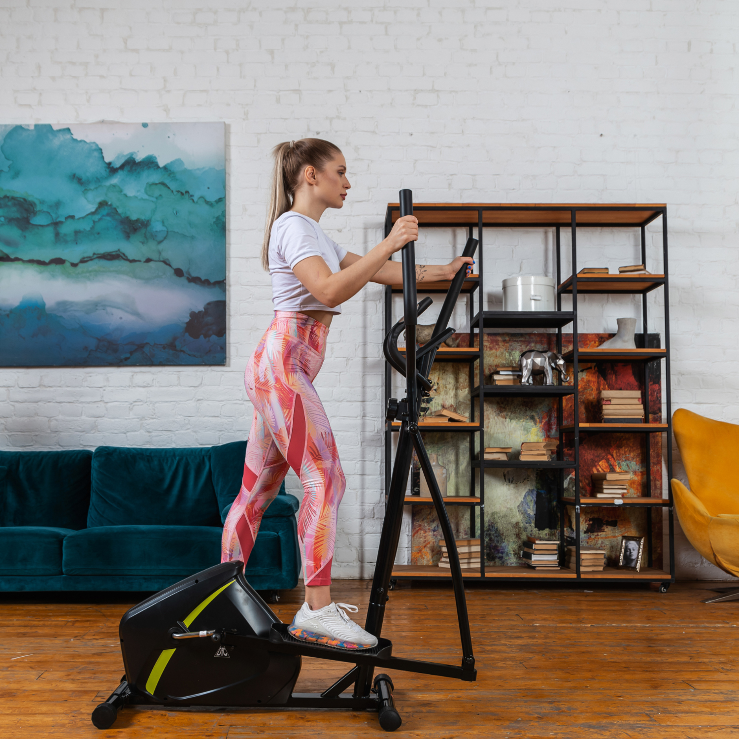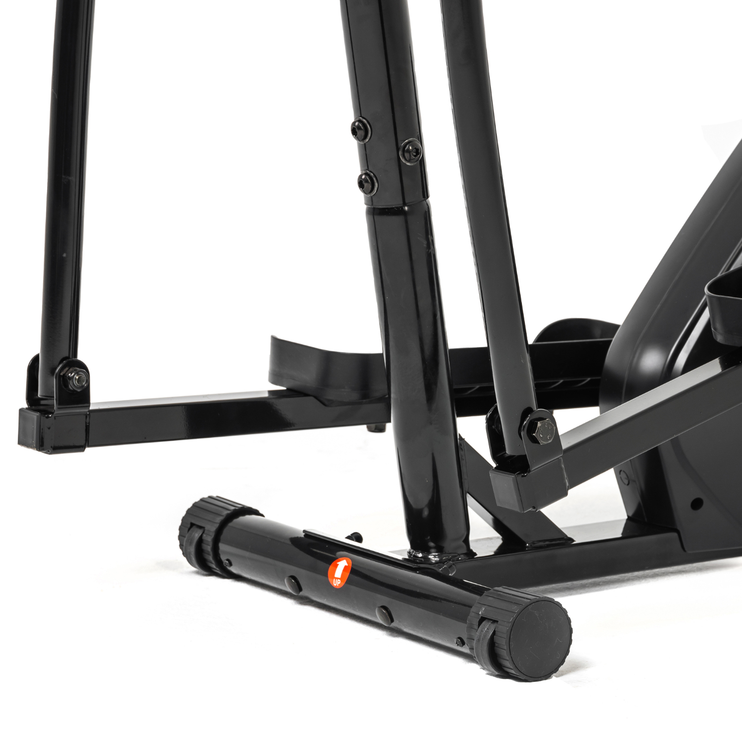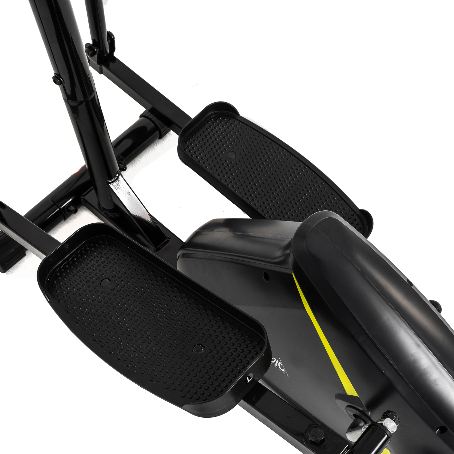 Среднегабаритный эллиптический тренажер для домашнего использования. Тренажер с высокоскоростным маховиком и магнитной системой нагружения. Механическая регулировка нагрузки, 8 фиксируемых положений нагрузки с помощью удобной ручки на стойке тренажера.