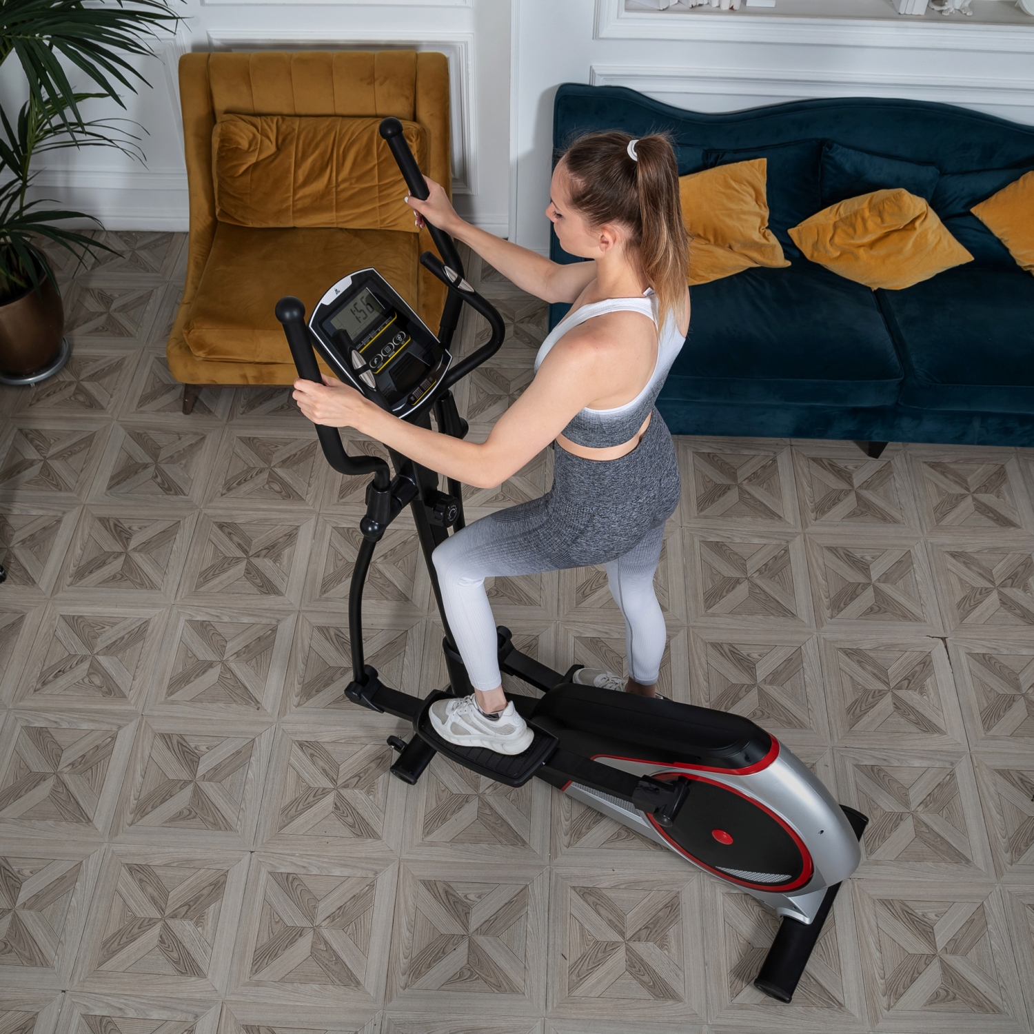 Среднегабаритный эллиптический тренажер для домашнего использования. Тренажер имеет магнитную систему нагружения, с механической регулировкой нагрузки. 8 фиксируемых положений нагрузки с помощью удобной ручки на стойке тренажера.