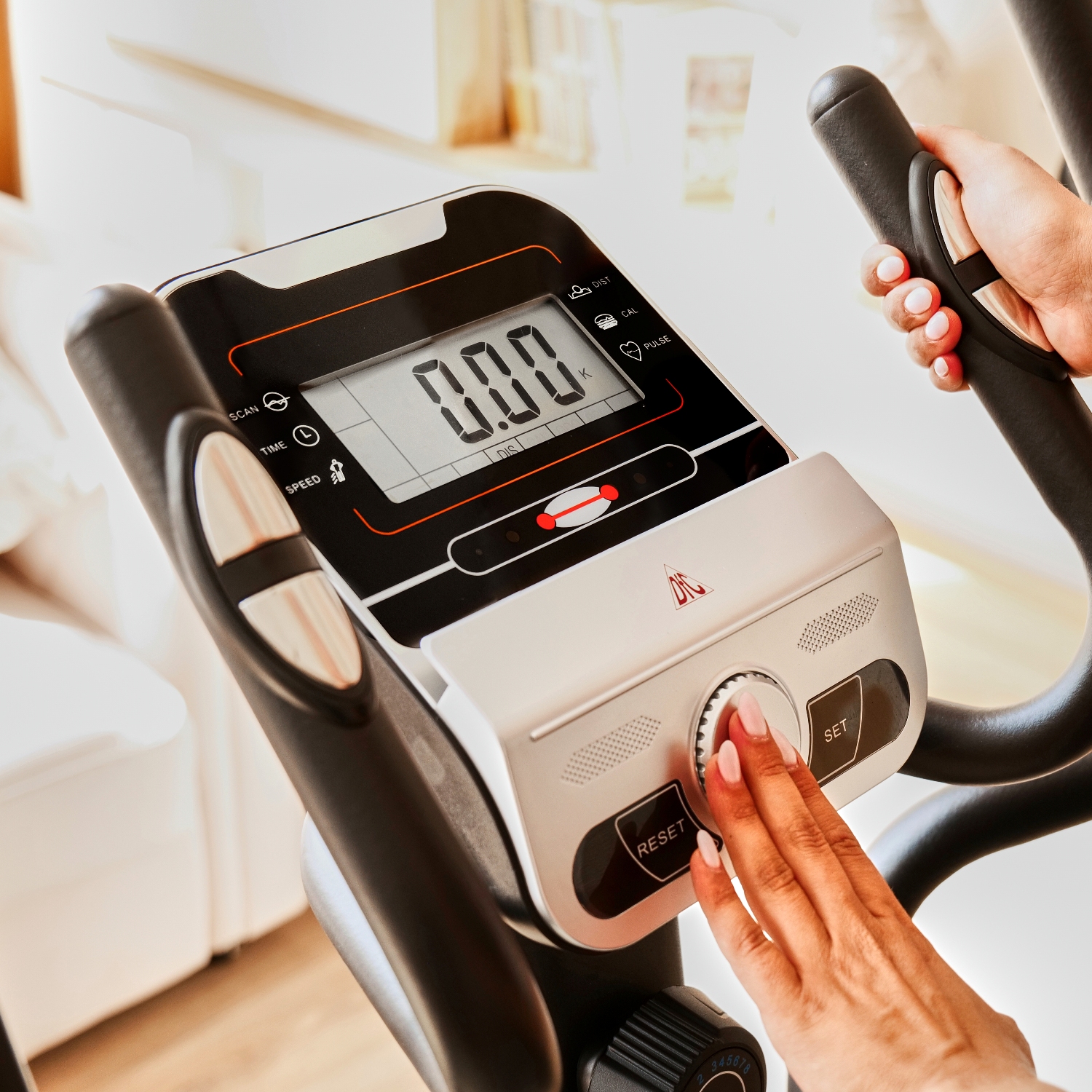Консоль с монохромным LCD-дисплеем отображает все необходимые показатели во время тренировки. Измерение пульса осуществляется с помощью встроенных датчиков.