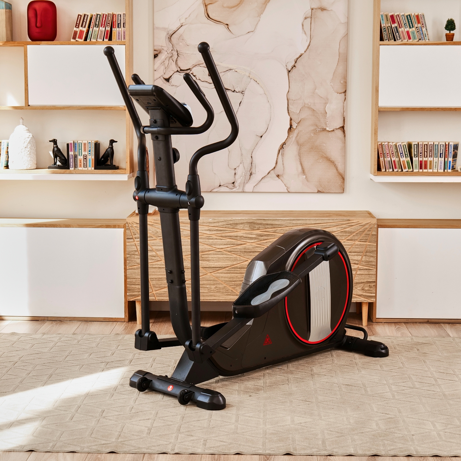 Эллиптический тренажер с задним расположением маховика для домашнего использования. Тренировка на эллиптическом тренажере - это прекрасная альтернатива бегу трусцой или ходьбе, с разницей в высоком сжигании калорий. Благодаря интенсивному движению рук верхние участки тела напрягаются, все тело укрепляется, повышается эффективность тренировки.