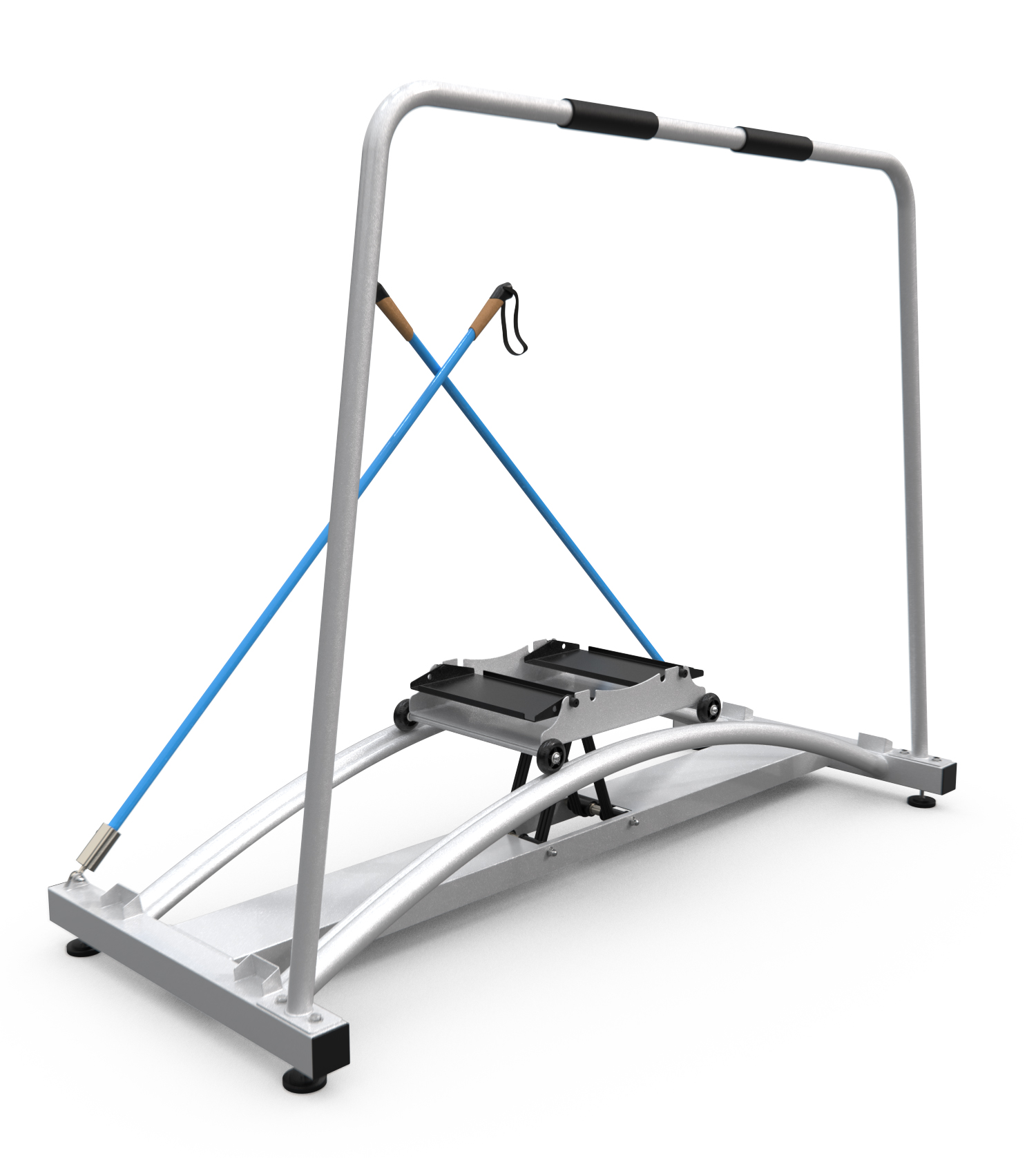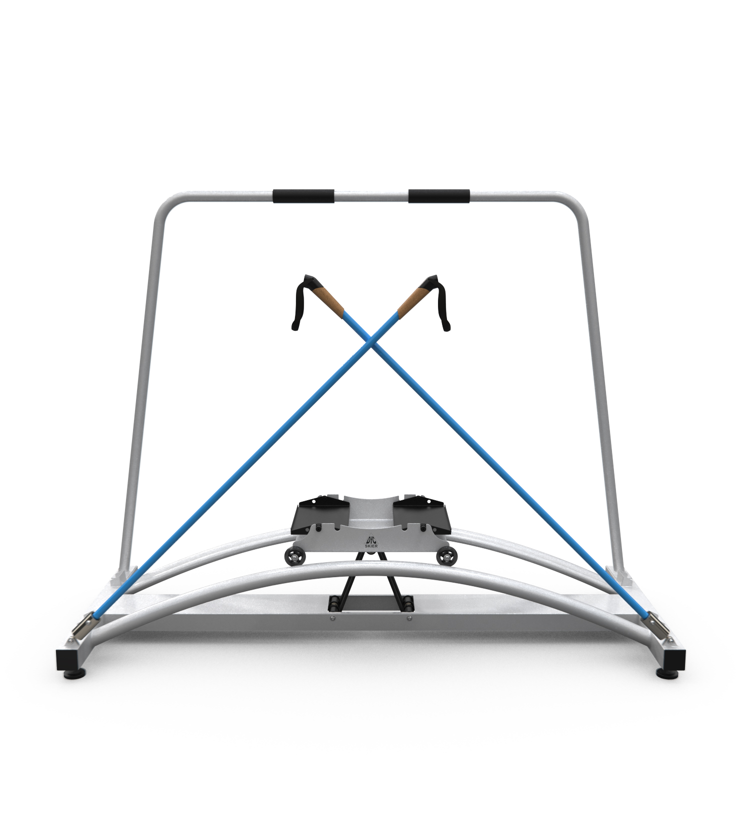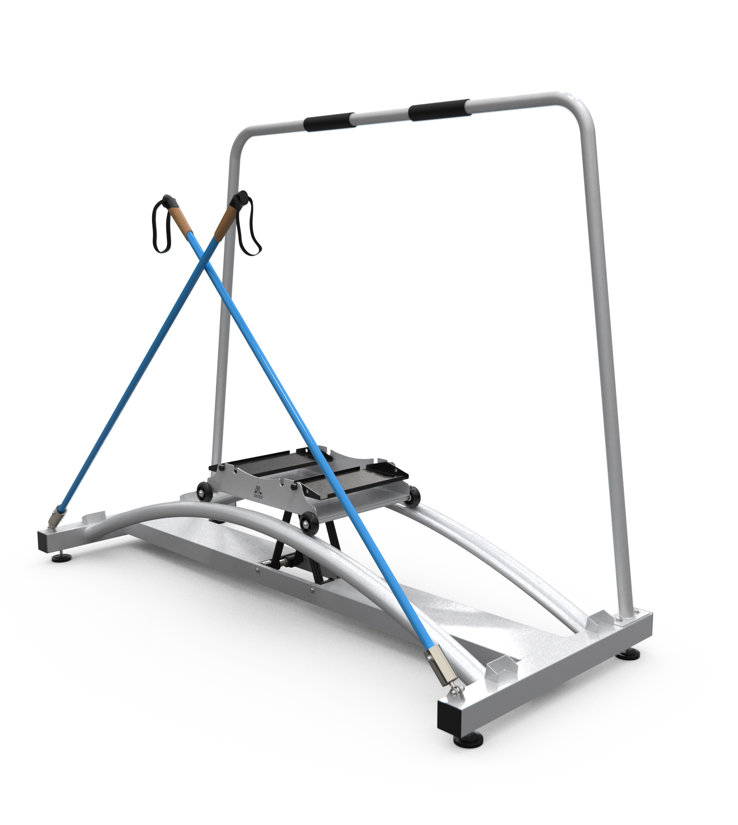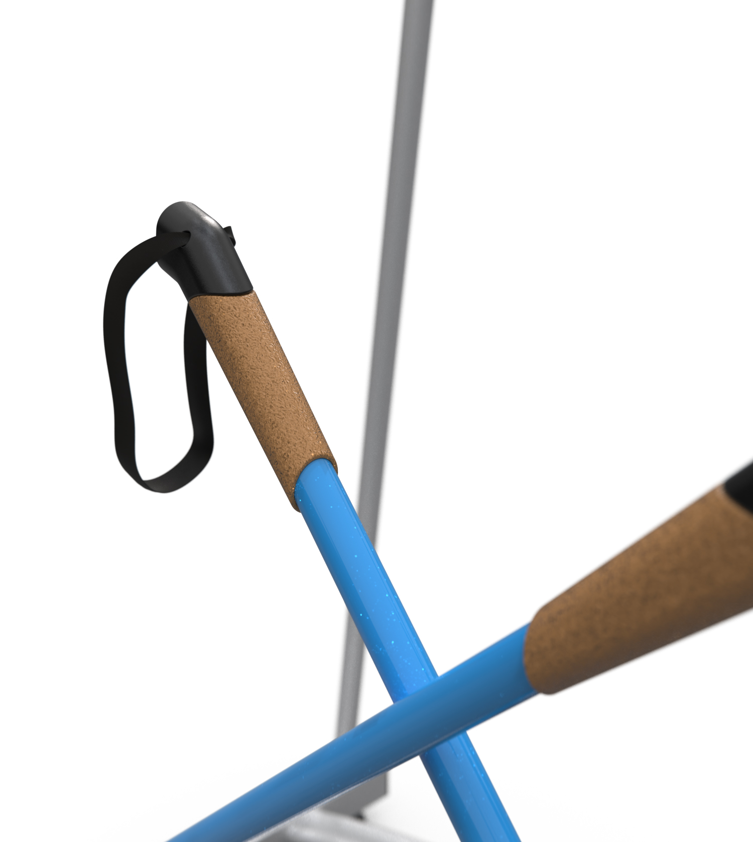 Педали и поручни горнолыжного тренажёра SkiBase обеспечивают комфорт и безопасность во время занятий, позволяя вам сосредоточиться на улучшении своей физической формы. Размер лыжных палок составляет 131,5 см.