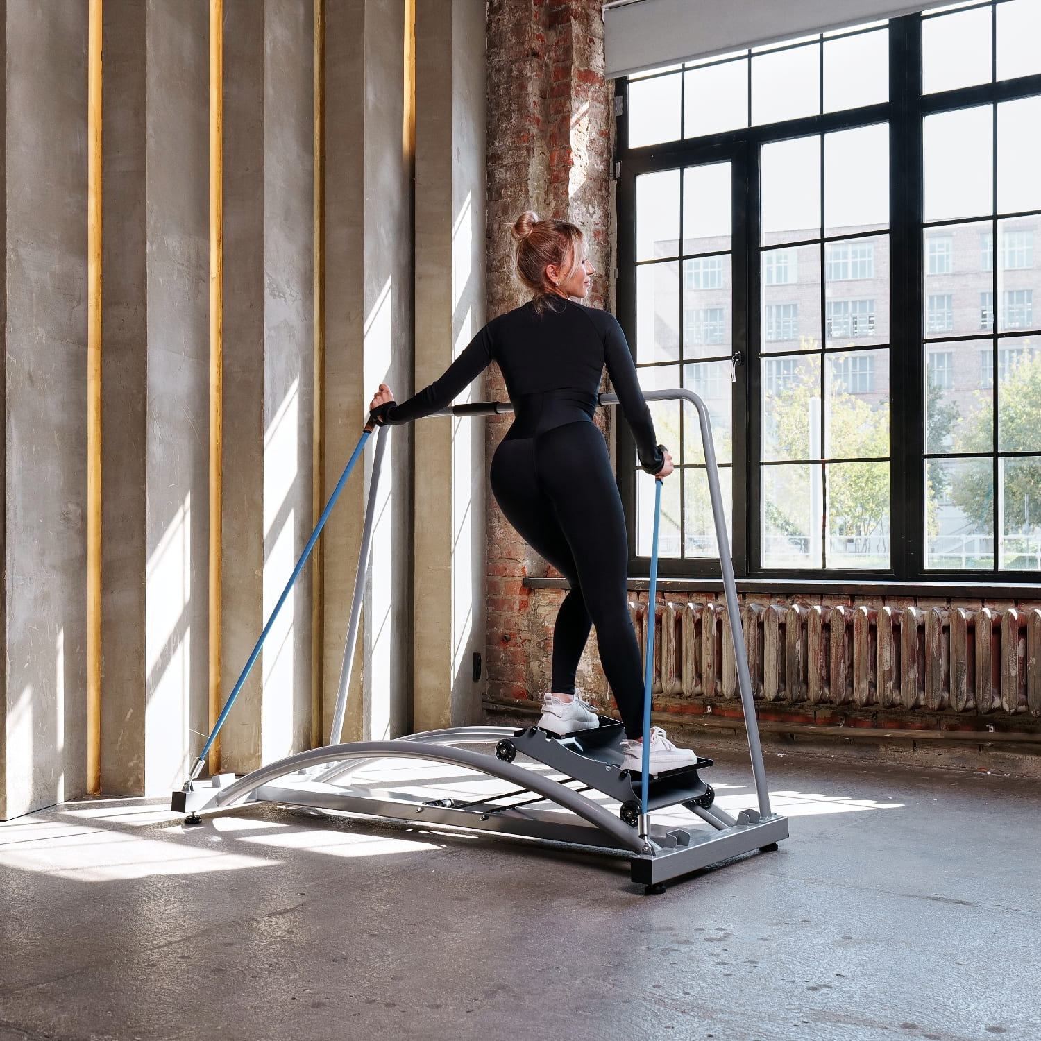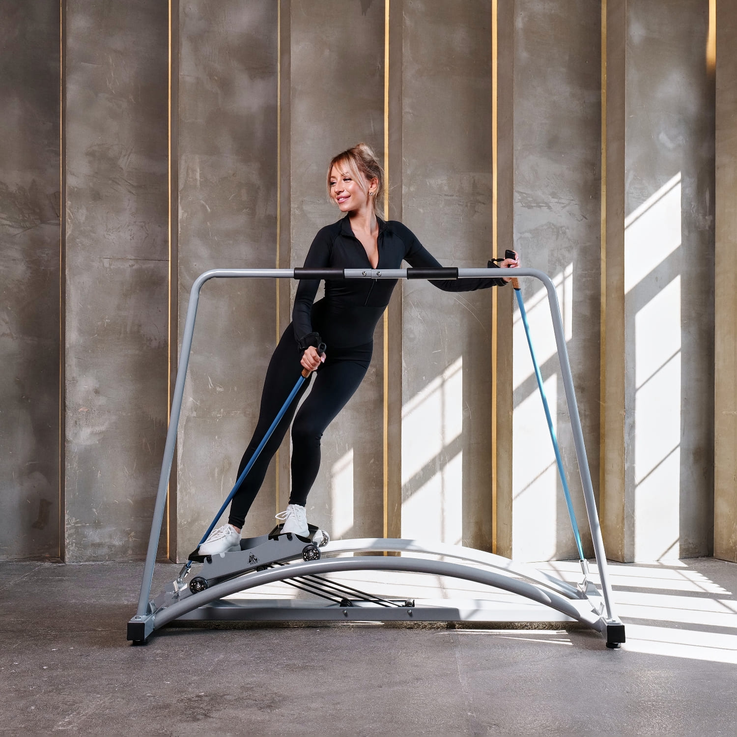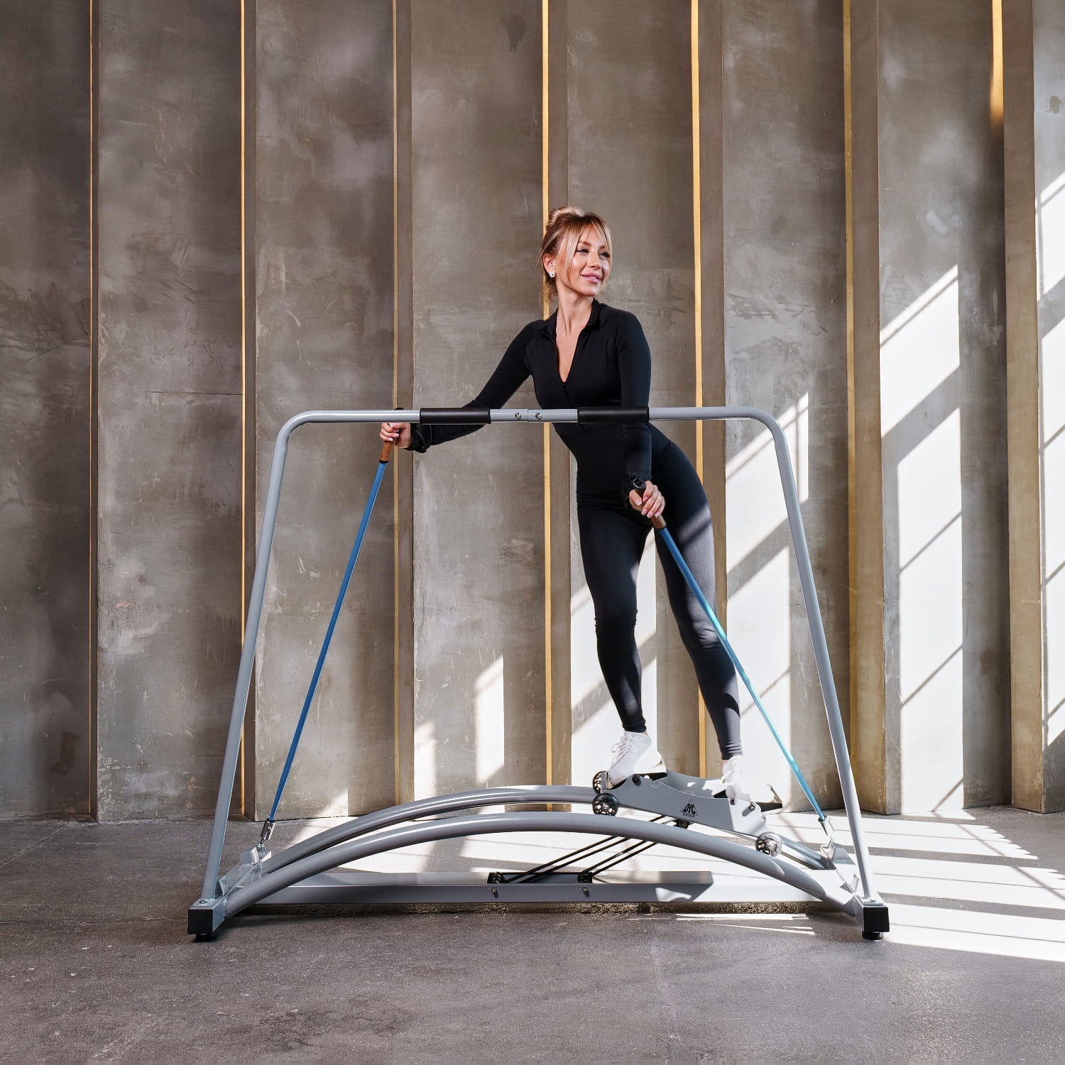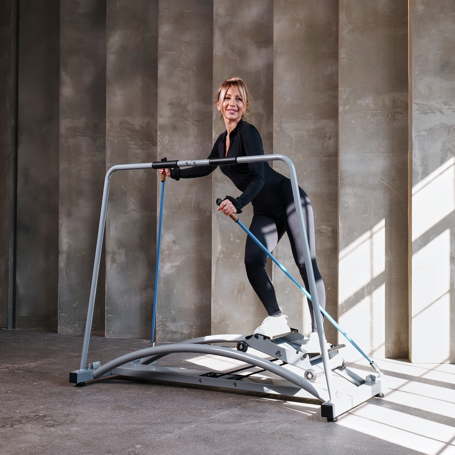 Чтобы начать заниматься на горнолыжном тренажёре, необходимо правильно настроить его под себя, учитывая свой уровень физической подготовки и цели. Нагрузка регулируется с помощью 6-ти эластичных тросов: в зависимости от количества прикреплённых тросов, меняется уровень нагрузки. Это позволяет вам адаптировать уровень интенсивности тренировки в зависимости от ваших целей и уровня физической подготовки.