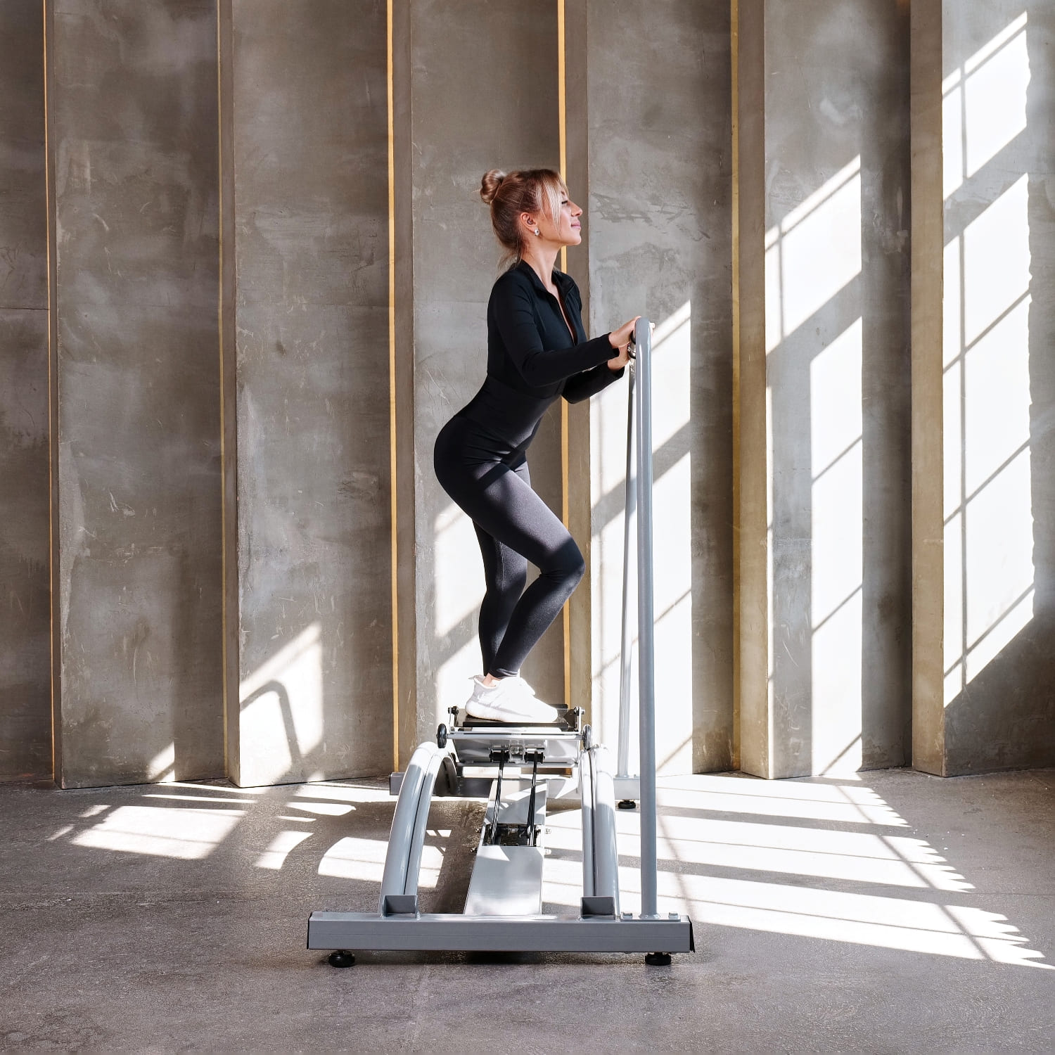 Чтобы начать заниматься на горнолыжном тренажёре, необходимо правильно настроить его под себя, учитывая свой уровень физической подготовки и цели. Нагрузка регулируется с помощью 6-ти эластичных тросов: в зависимости от количества прикреплённых тросов, меняется уровень нагрузки. Это позволяет вам адаптировать уровень интенсивности тренировки в зависимости от ваших целей и уровня физической подготовки.