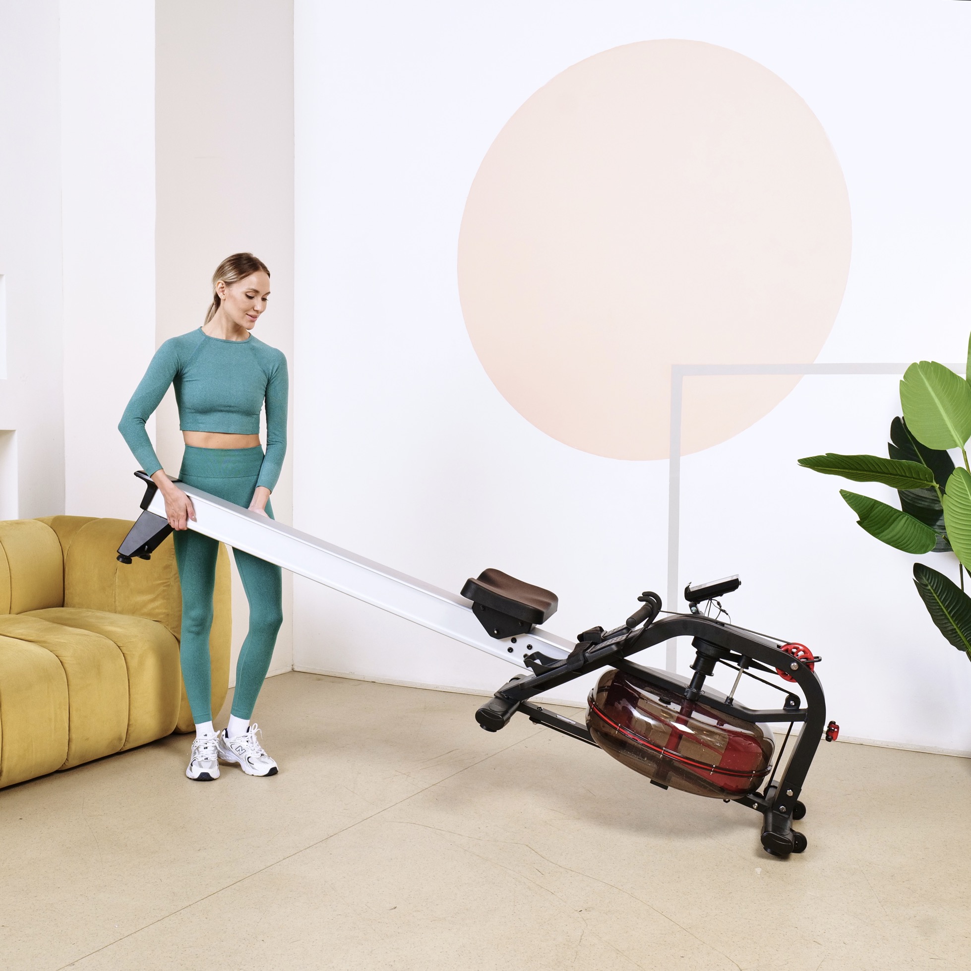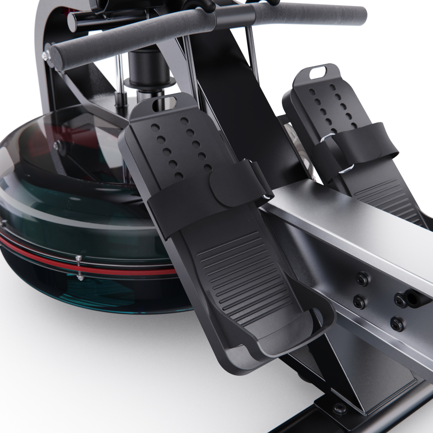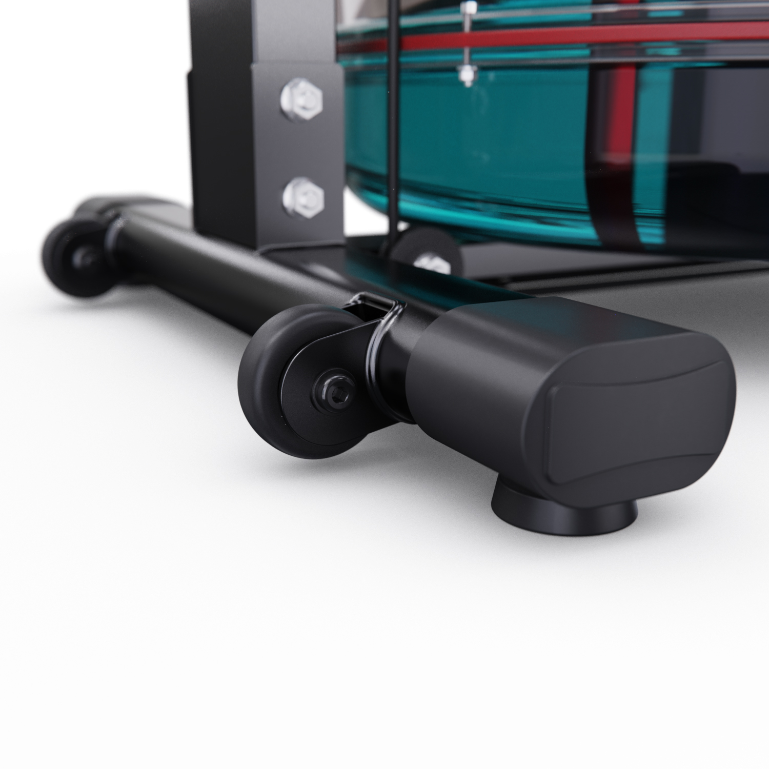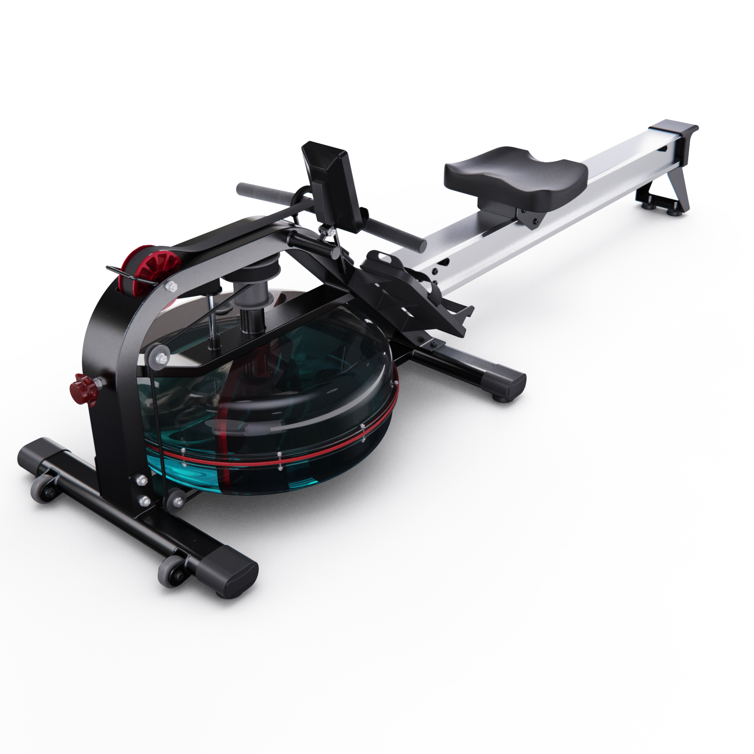 Кардиотренажёр использует водную систему нагрузки, что обеспечивает плавность хода и бесшумную работу. Транспортировочные ролики облегчают перемещение тренажёра при необходимости.
