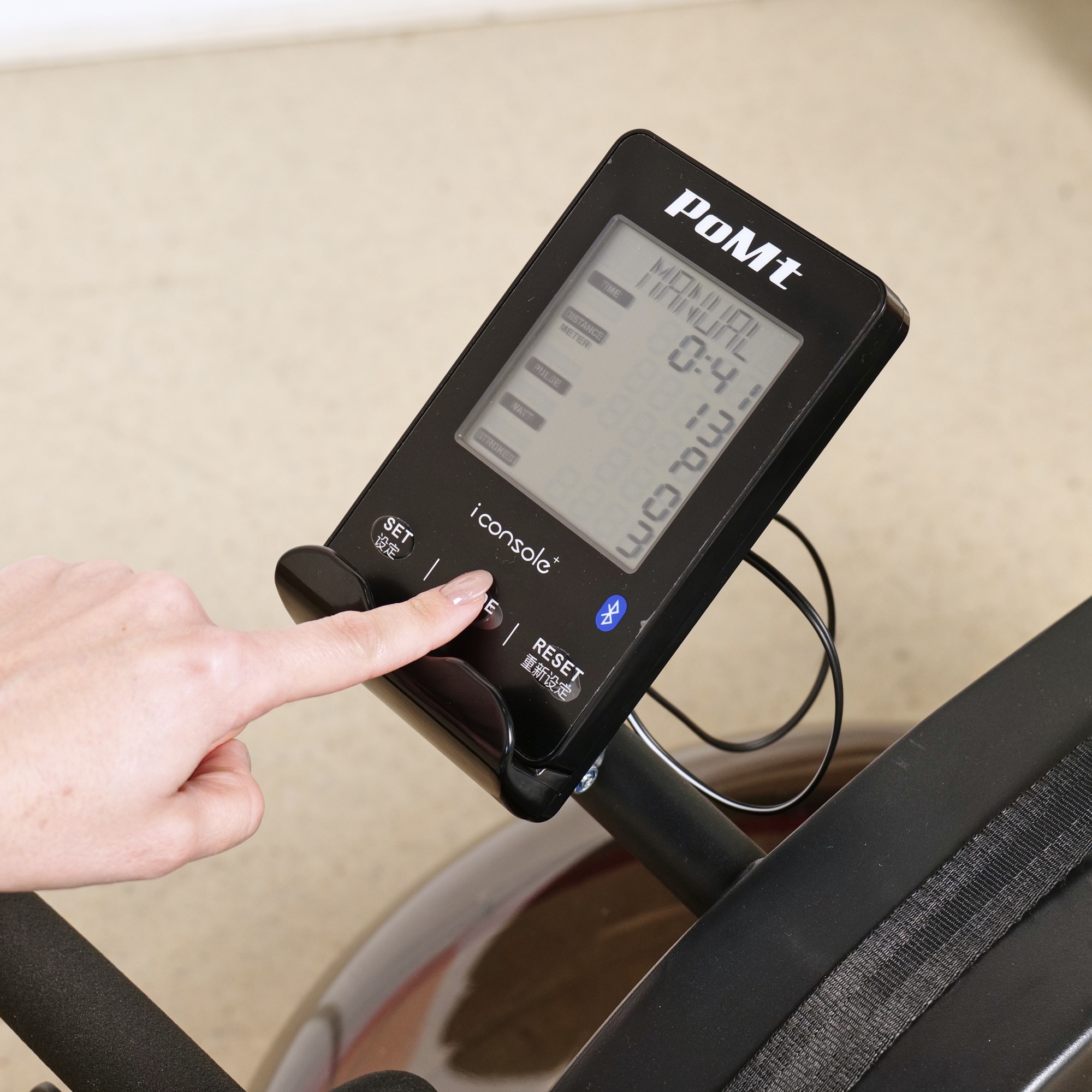 Тренажер оснащён консолью, которая показывает время, темп, дистанцию, мощность, калории, пульс и количество гребков. Тренажёр имеет три режима работы: ручной, интервальный (три программы) и целевой (пять программ). Тренажер для ног подключается к приложению i-console через Bluetooth. В комплект входят батарейки типа АА (в количестве 2 штук).