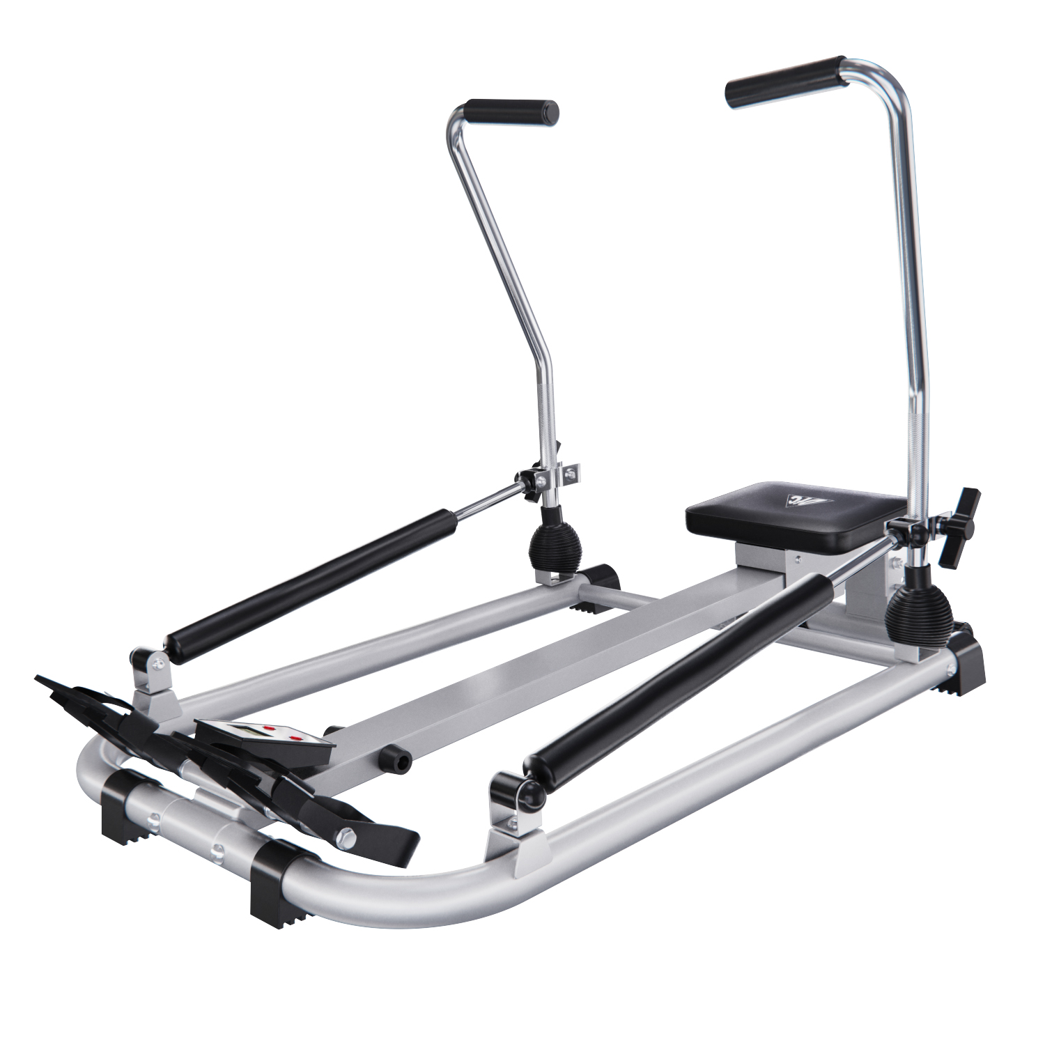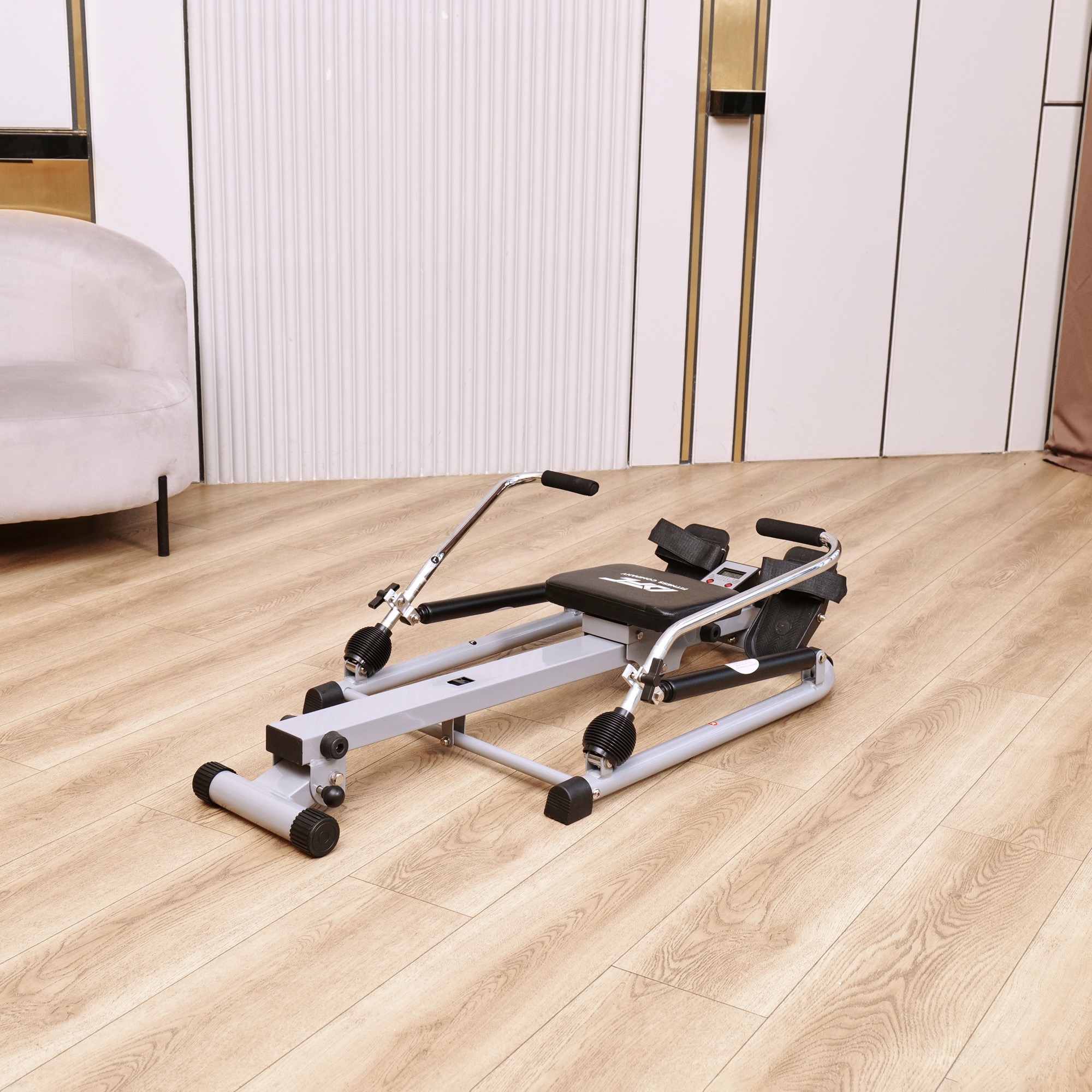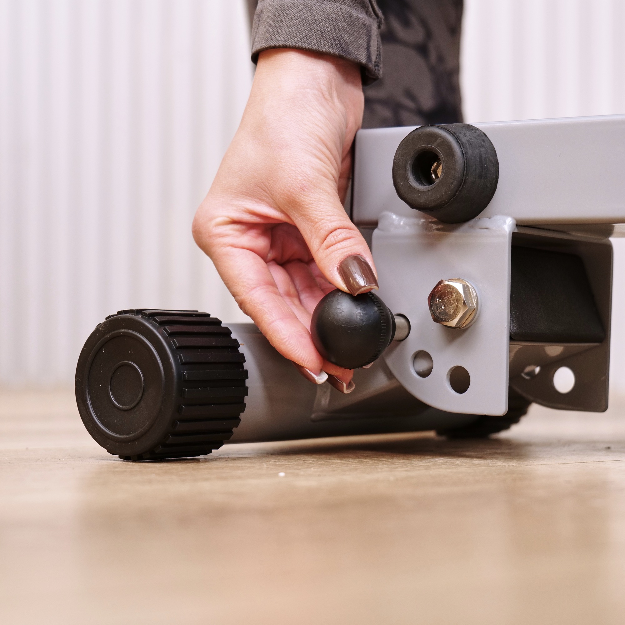 Гребной тренажёр DFC R403B2 — это не только эффективный кардиотренажёр для укрепления сердечно-сосудистой системы, но и универсальный инструмент для развития мышц ног и рук. Благодаря механической регулировке угла наклона рамы и гидравлической системе нагрузки, вы сможете настроить оптимальные условия для кардио занятий и повысить их эффективность.