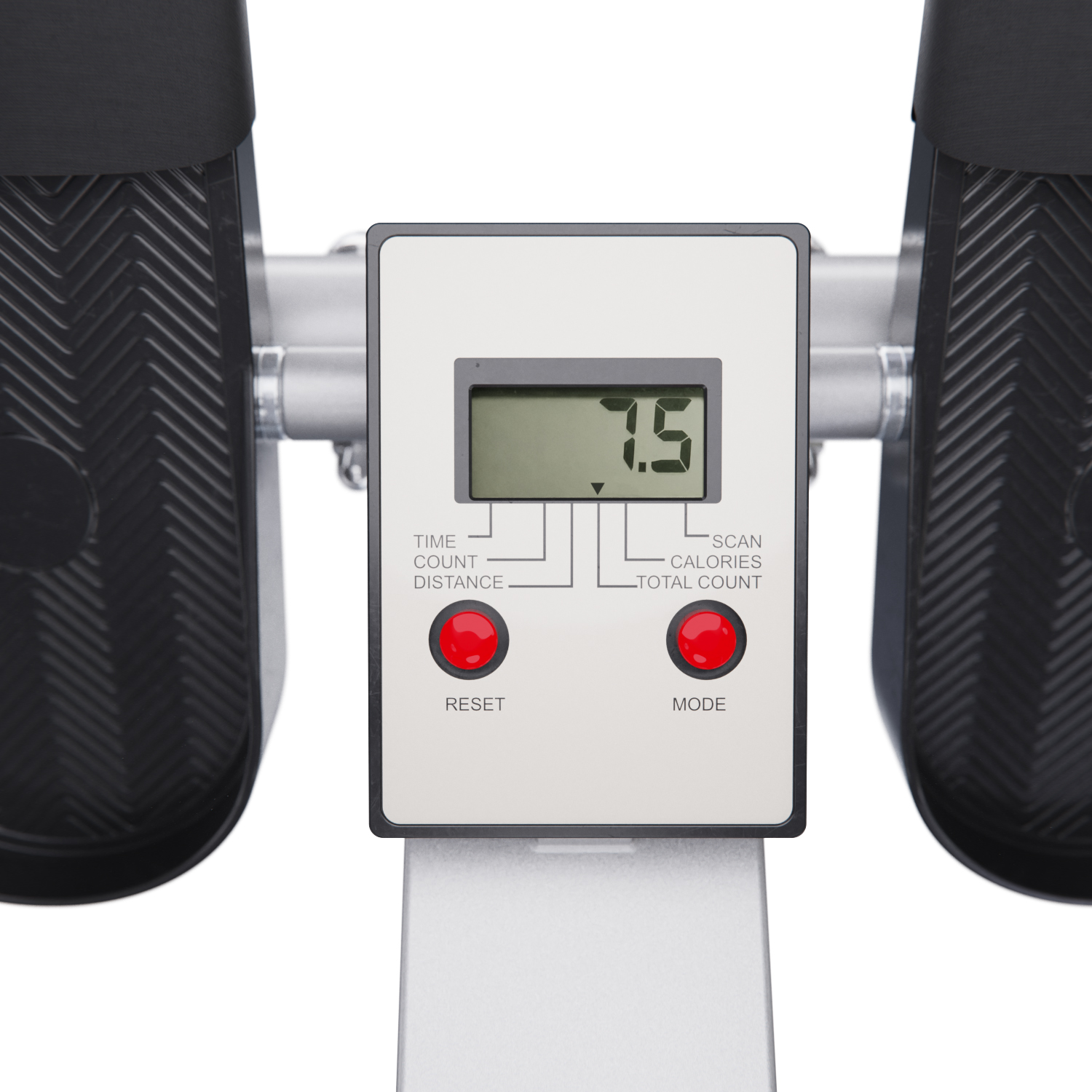 LCD-экран компьютера с подсветкой отображает все необходимые показатели: скан, время, расстояние, количество гребков, общее количество гребков и потраченные калории.