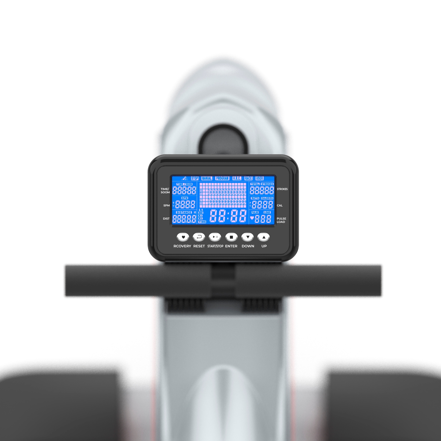 Дисплей показывает следующие параметры: мощность, время, количество гребков в минуту, общее количество гребков, дистанцию и калории. Разнообразить тренировки и повысить их эффективность помогут встроенные программы: 12 встроенных, 4 пульсозависимые, соревнование с виртуальным соперником и 1 программа восстановления. Дополнительно есть возможность создать собственную программу в ручном режиме.