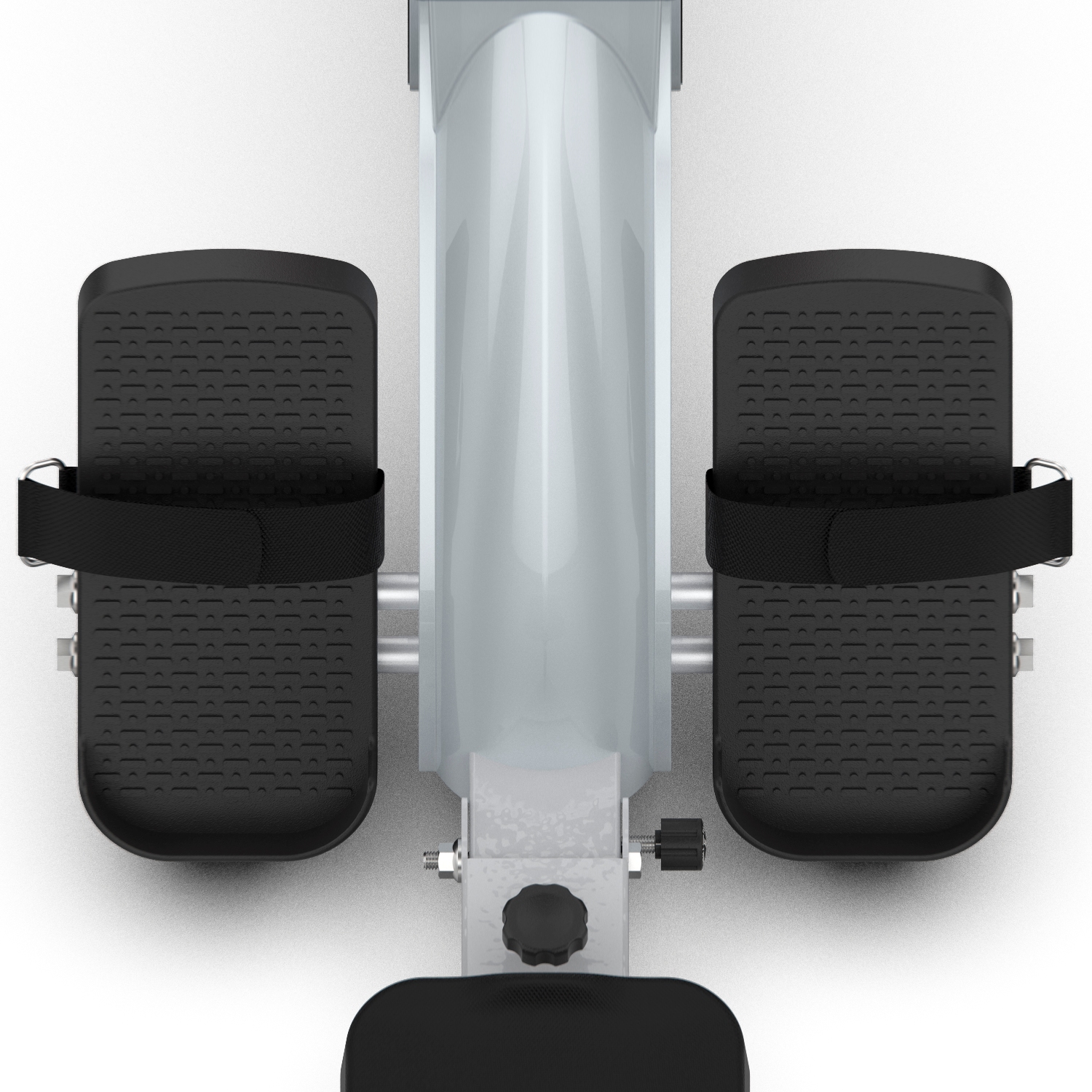 Гребной тренажёр R7108P складной, благодаря чему не займёт много места в комнате. Эргономичное сиденье регулируется по горизонтали, а на педалях предусмотрены ремешки с липучками. Эти особенности позволят отрегулировать тренажёр исходя из потребностей пользователя.