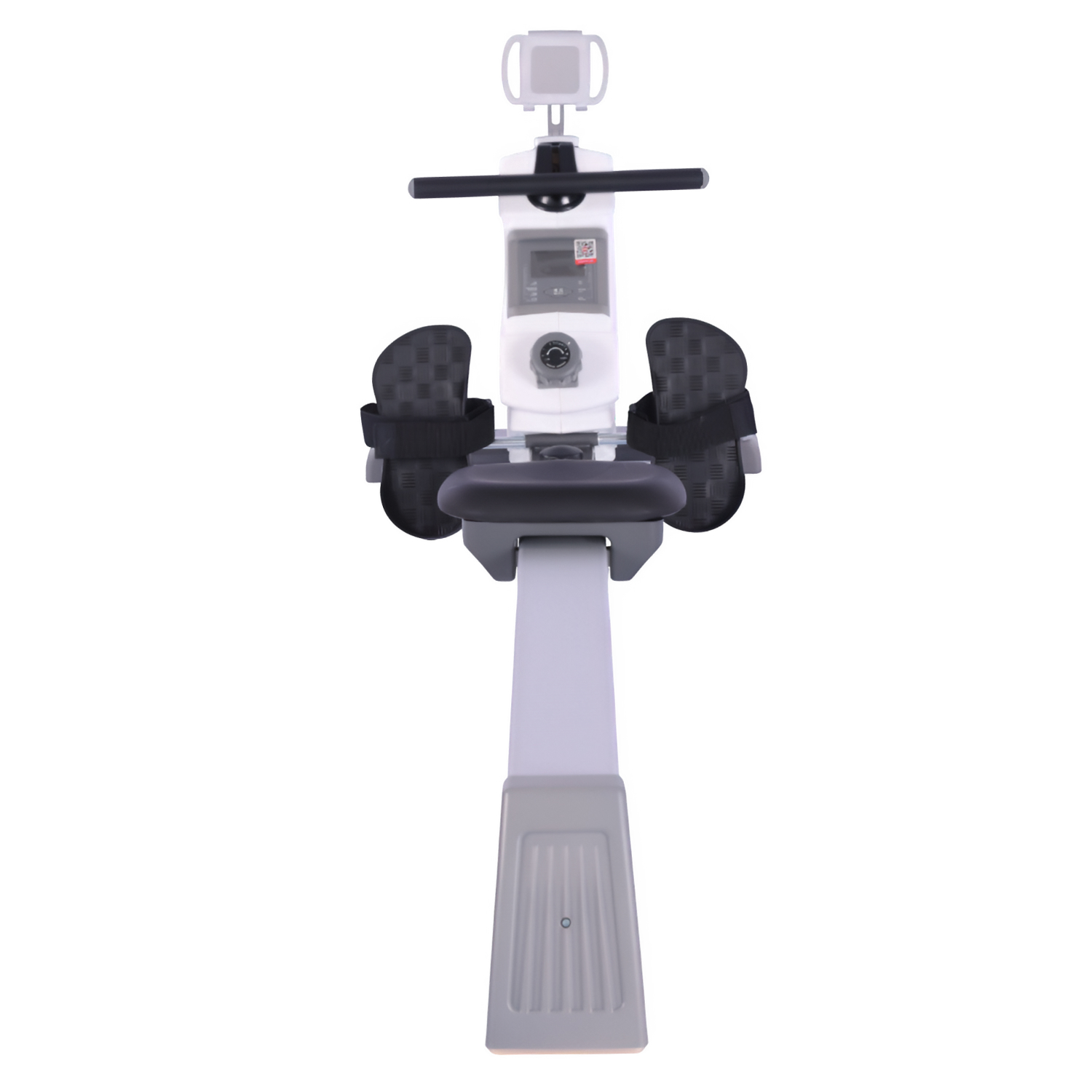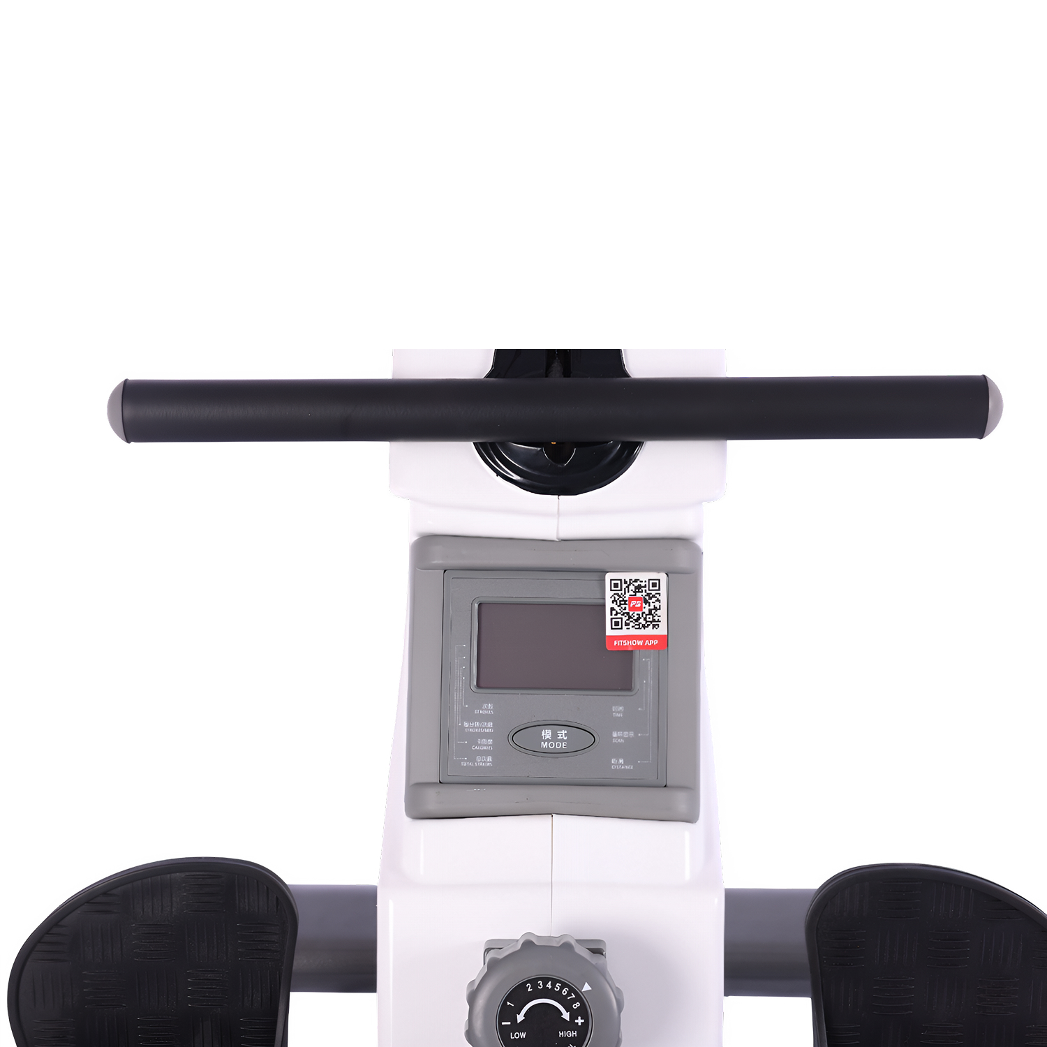 Тренажёр оснащён монохромным LCD-дисплеем, отображающим ключевые показатели тренировки — количество гребков в минуту, калории, общее количество гребков, время, режим сканирования и дистанцию. Дисплей работает от двух батареек типа AA (не входят в комплект). Для расширения функционала предусмотрено подключение по Bluetooth к приложению FITSHOW, что позволяет отслеживать прогресс и делать занятия более увлекательными.
