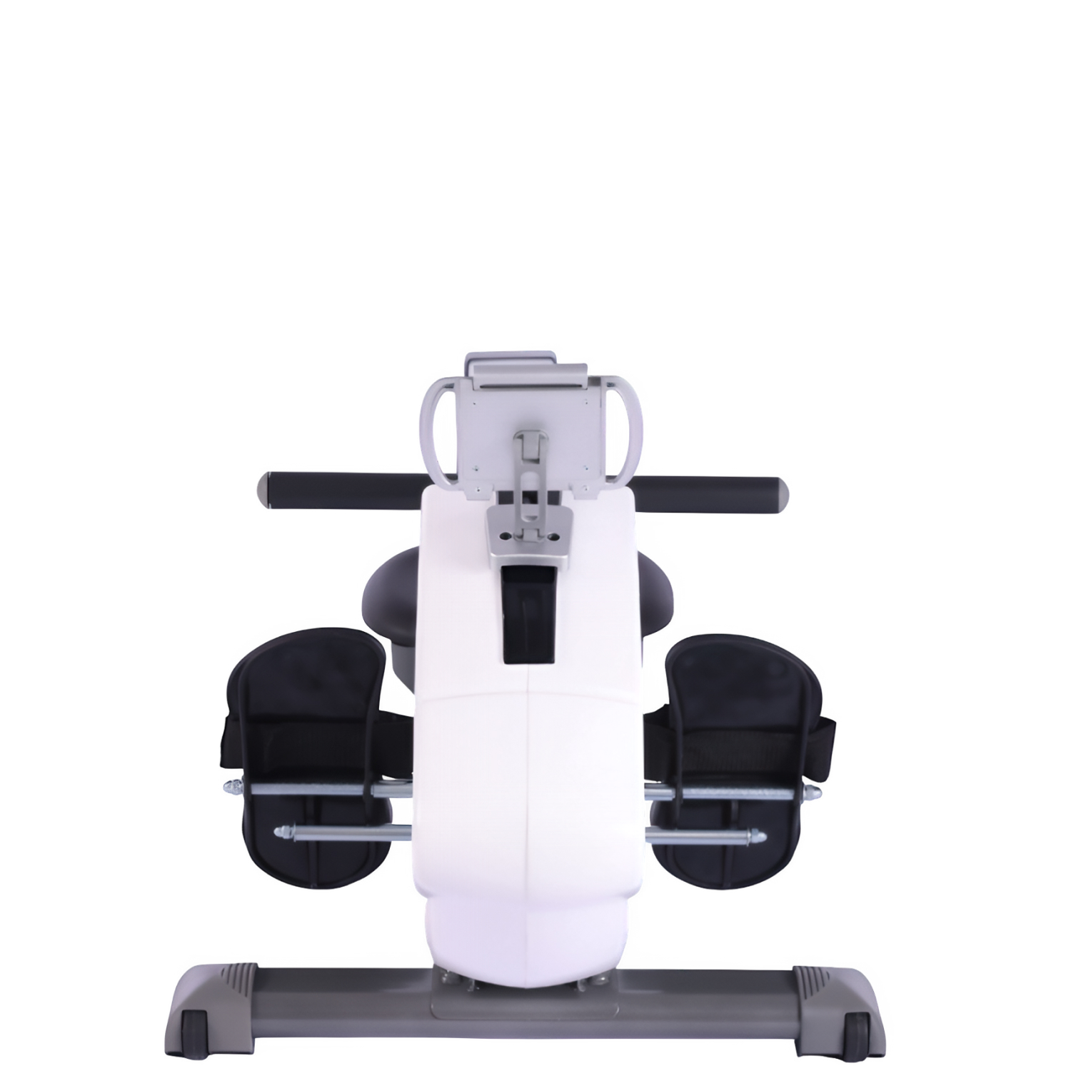Рифленые педали с регулируемыми ремешками обеспечивают надежную фиксацию ног. Также есть компенсаторы неровности пола, которые гарантируют стабильность тренажера, а транспортировочные ролики обеспечивают лёгкое и удобное перемещение, позволяя без труда менять его расположение в помещении.