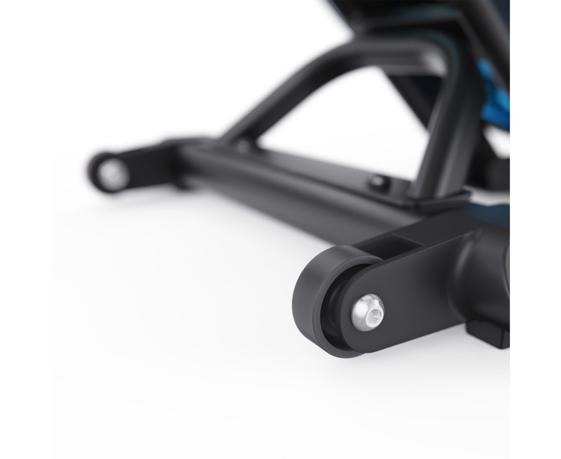 Для устойчивости тренажёр оснащён компенсаторами неровности пола, благодаря которым он надёжно стоит даже на неидеальной поверхности. Встроенные транспортировочные ролики позволяют легко переместить тренажёр с места на место, что особенно удобно при использовании в ограниченном пространстве.