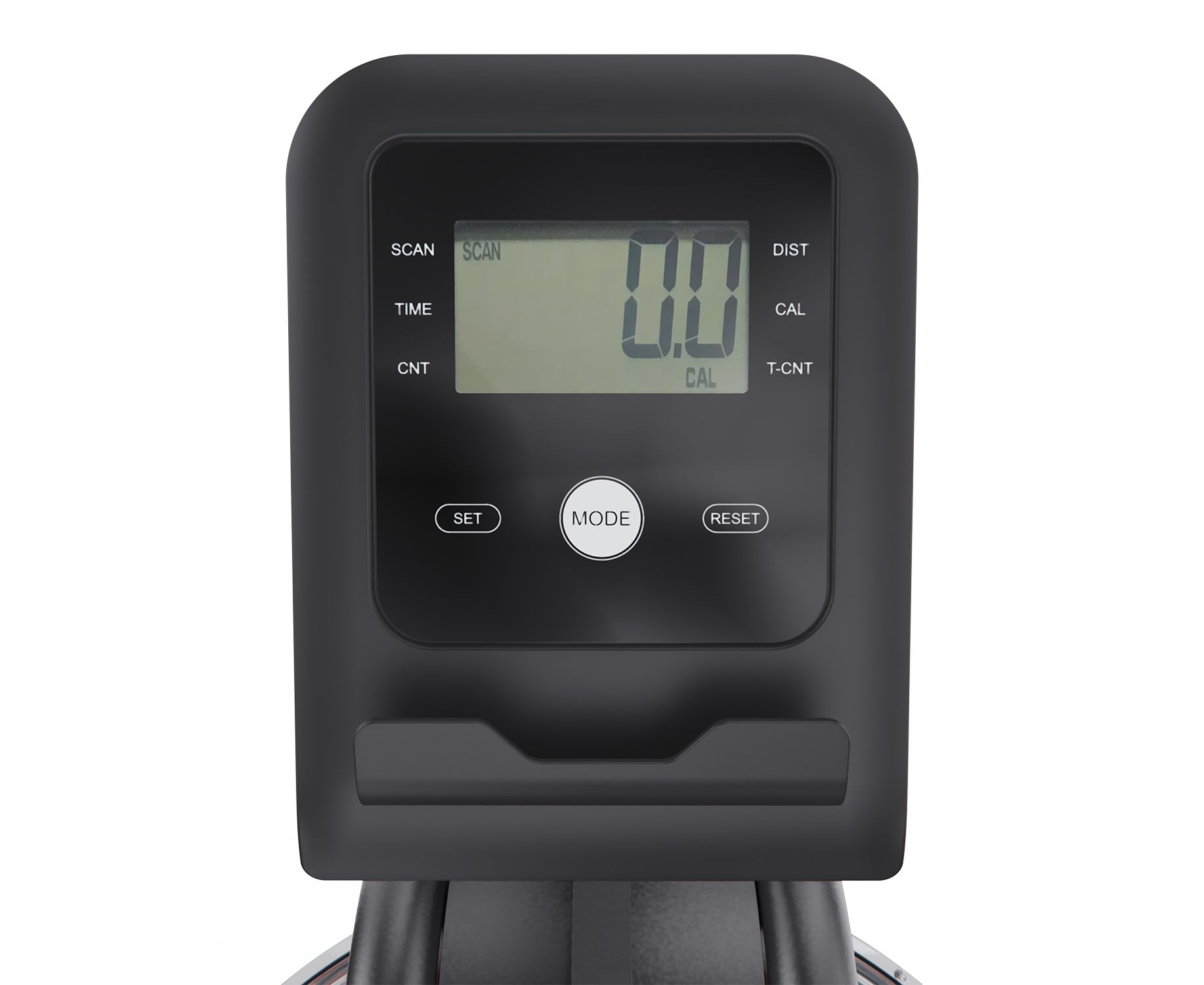 В комплекте с гребником идёт воронка, насос и 2 батарейки типа AAA. На LCD-дисплее можно отслеживать ключевые параметры: время, количество гребков, гребки в минуту, дистанцию, пульс, калории или режим сканирования всех параметров.