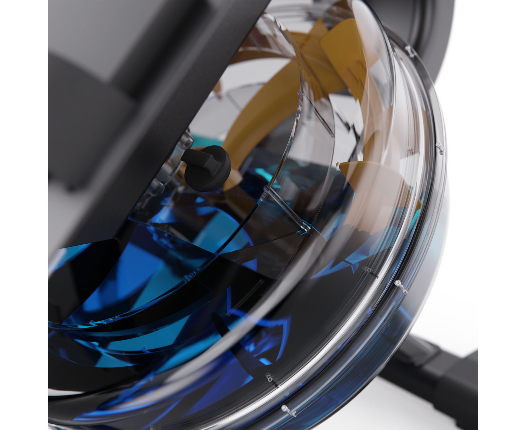 Тренажёр оснащён наклонным водяным баком под углом 50°, что позволяет увеличить сопротивление и нагрузку примерно на 30 % по сравнению с моделями с горизонтальным резервуаром. Такая конструкция точнее передаёт динамику настоящей гребли на воде, делая каждое движение более интенсивным и естественным. Благодаря этому тренировка становится эффективнее, глубже прорабатываются мышцы спины, рук и корпуса, а ощущения максимально приближены к реальному гребку.
