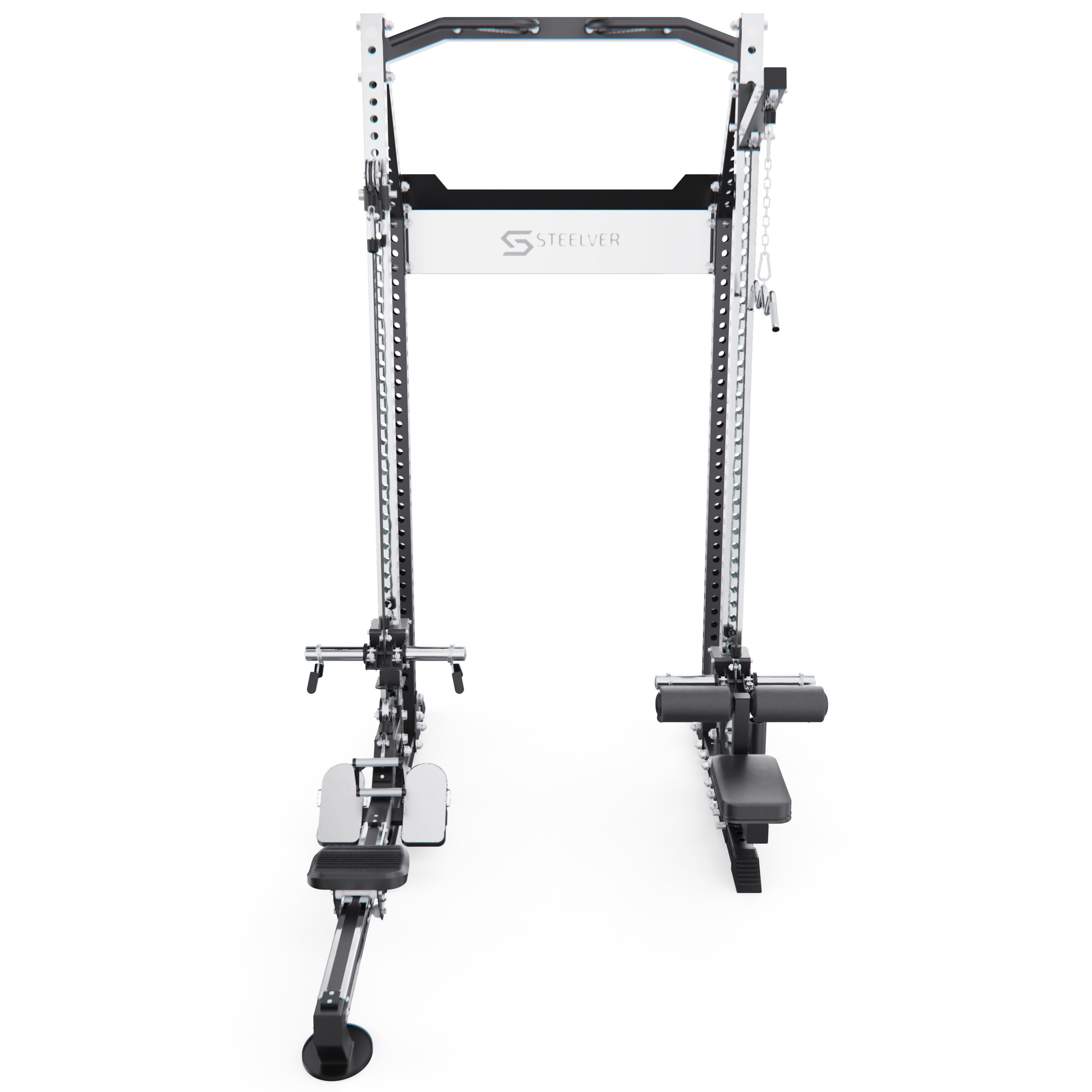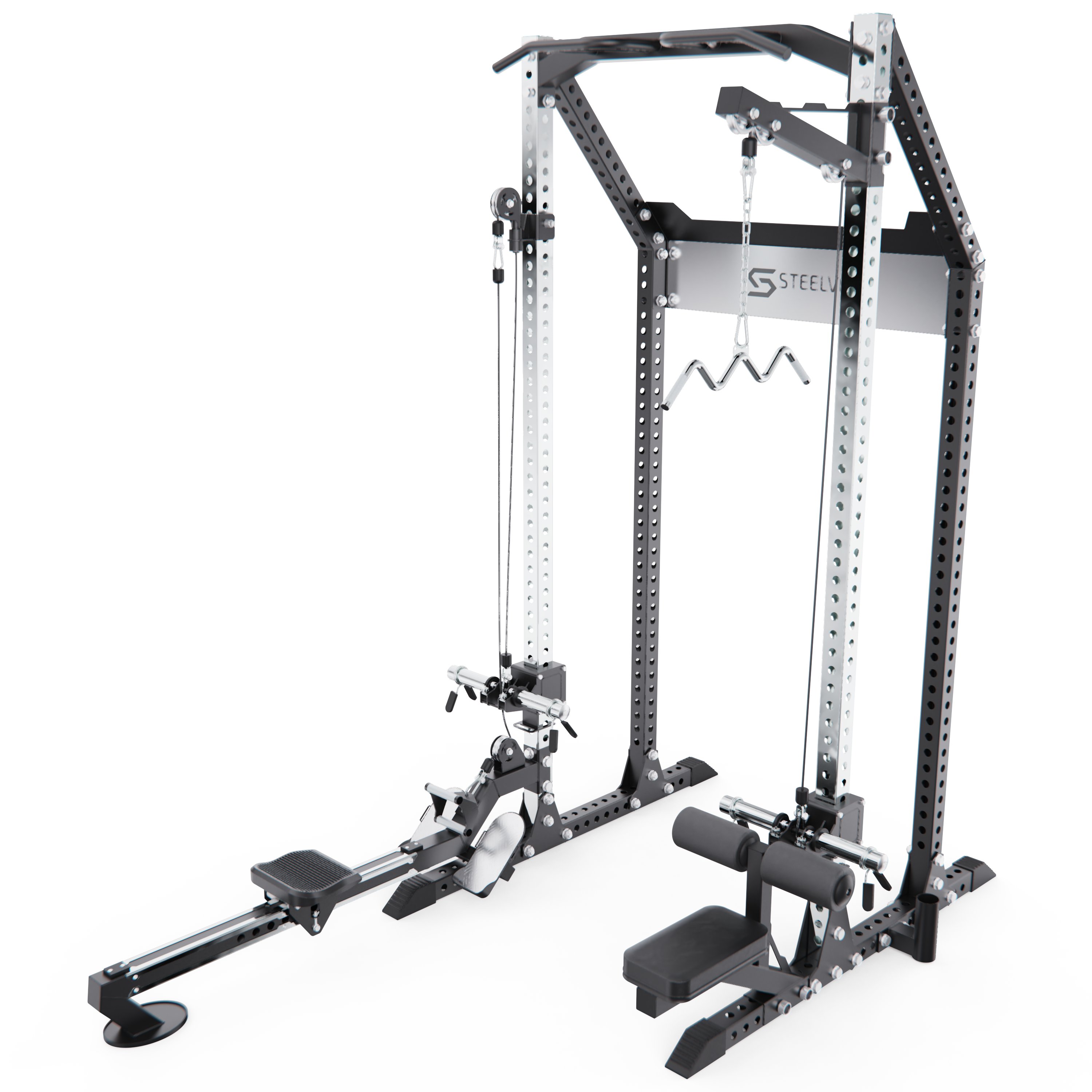 Мультистанция, гребной тренажер STEELVER SV9203 — это многофункциональный силовой комплекс, рассчитанный на высокие нагрузки и широкий спектр упражнений. Модель подходит для полноценных силовых тренировок и выполнения упражнений с функцией верхней тяги и гребли.