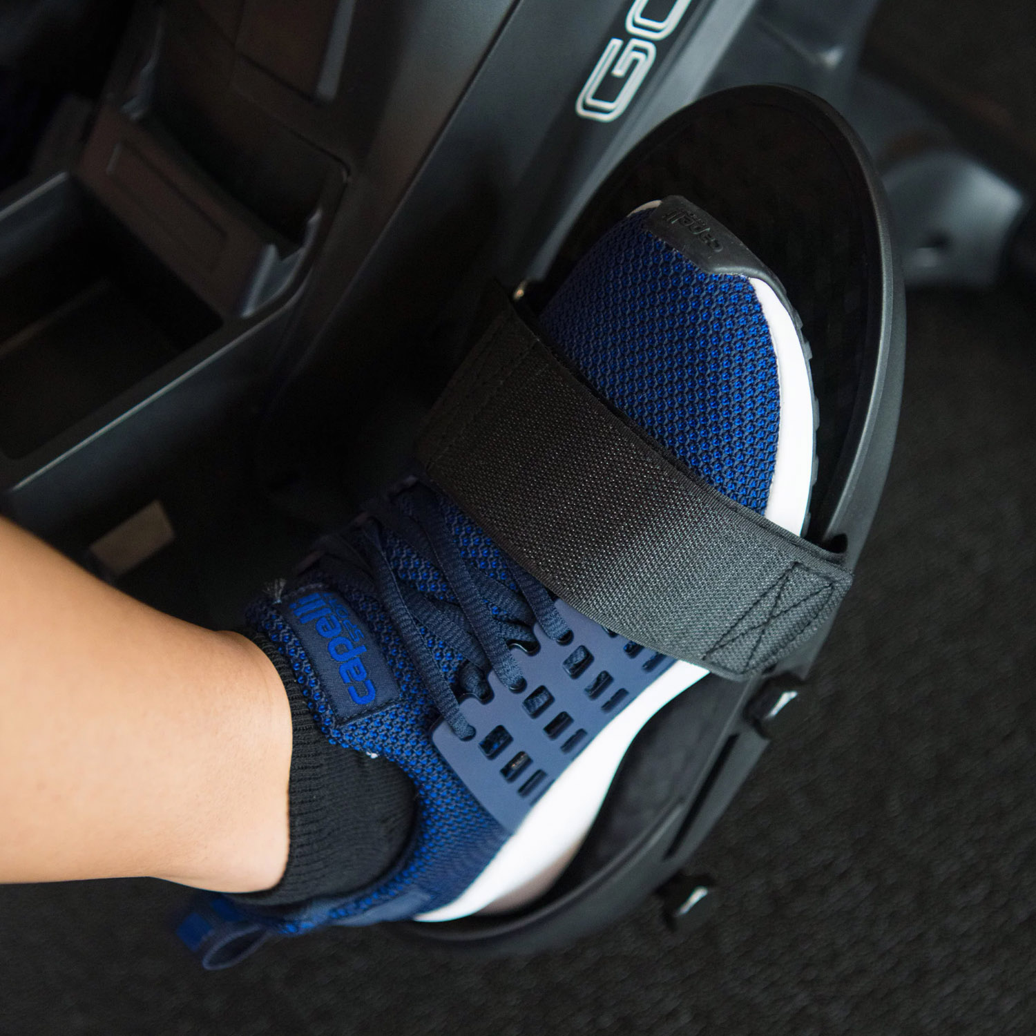 Консоль работает от двух батареек типа ААА и оснащена откидным дисплеем, который позволяет контролировать параметры тренировки во время занятий. Кроме того, держатель для смартфона позволяет следить за любимыми программами или видео во время выполнения упражнений.
