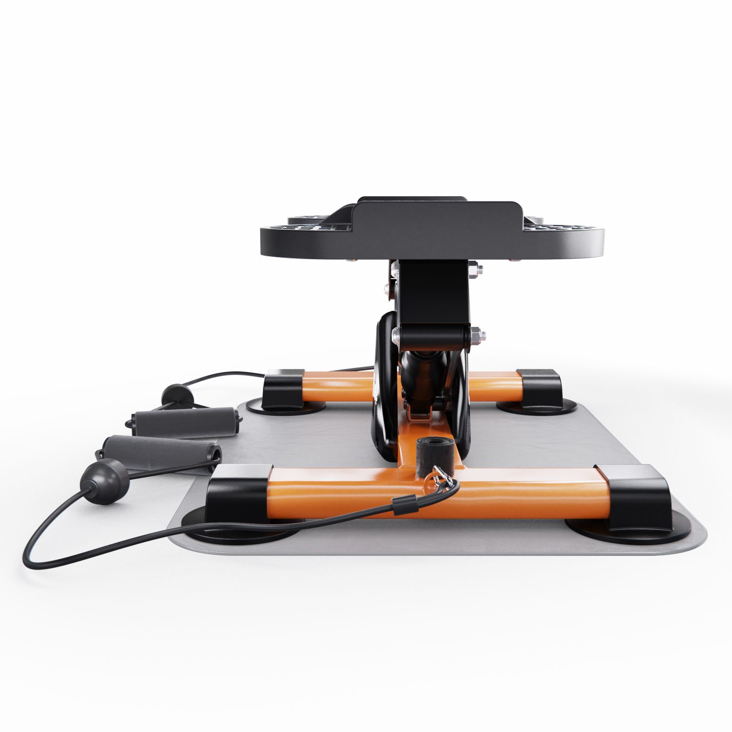 В комплекте антивибрационный коврик размером 72 x 36,5 см для защиты пола и комфортной тренировки, а также эспандеры 76 см для одновременной проработки нижней и верхней части тела, что делает тренировки более разнообразными и эффективными. Резиновые накладки на нижней части министеппера предотвращают скольжение и повышают устойчивость, добавляя уверенности при выполнении упражнений.