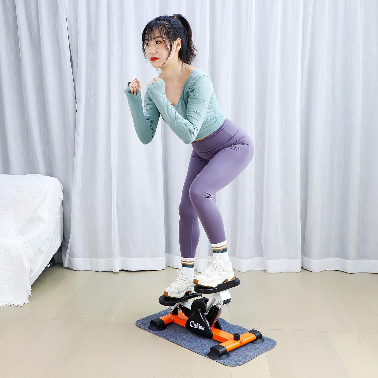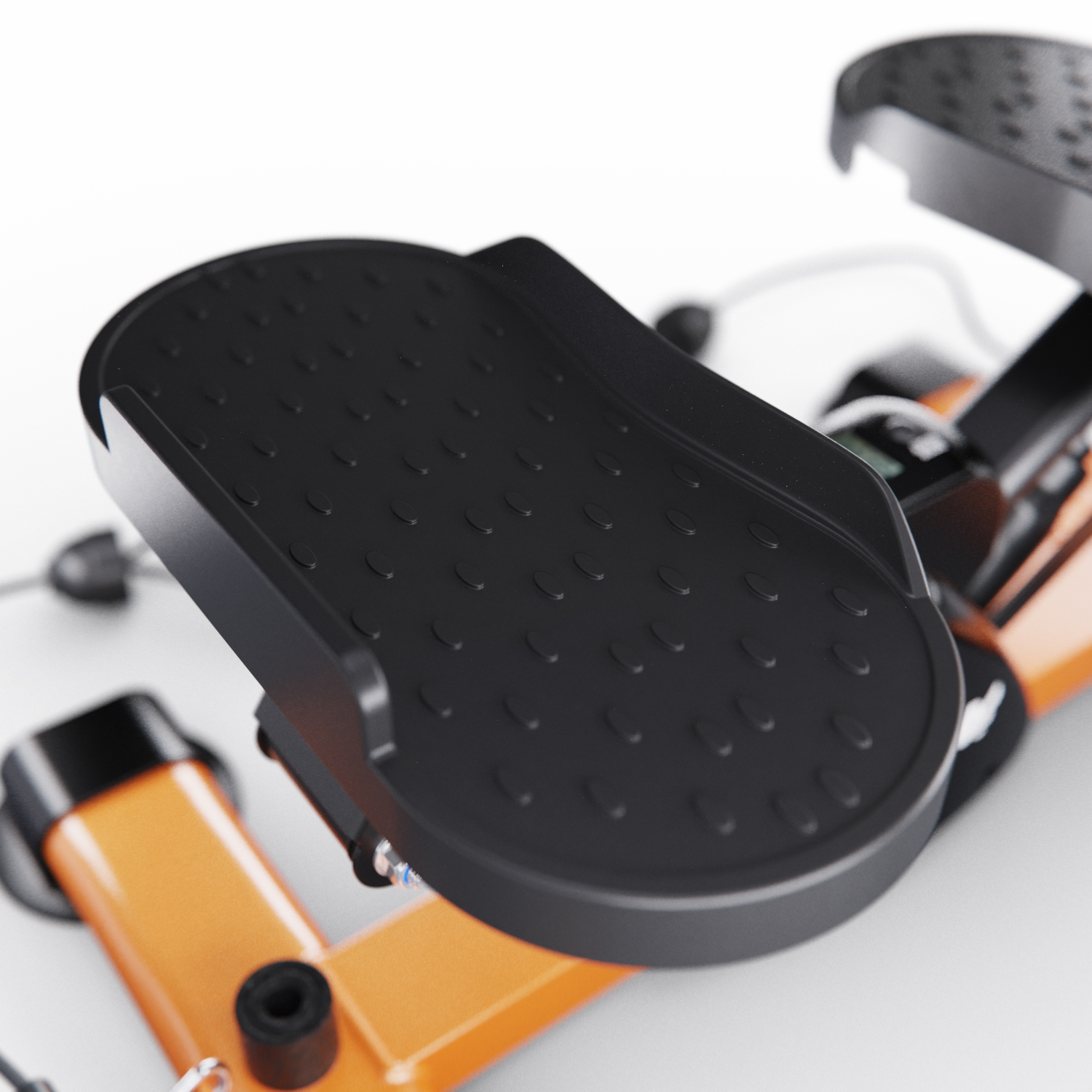Рифленые педали размером 27 x 12 см обеспечивают надежное сцепление с обувью и предотвращают скольжение во время упражнений, обеспечивая безопасность. Регулируемая высота педалей от 18 до 31 см позволяет индивидуально настраивать степпер под необходимую нагрузку и уровень комфорта пользователя. Оптимальное расстояние между педалями 16,5 см обеспечивает естественное положение ног во время тренировок, что способствует правильной биомеханике движений. Это минимизирует нагрузку на суставы, позволяя избежать чрезмерного напряжения в стопах и голенях.