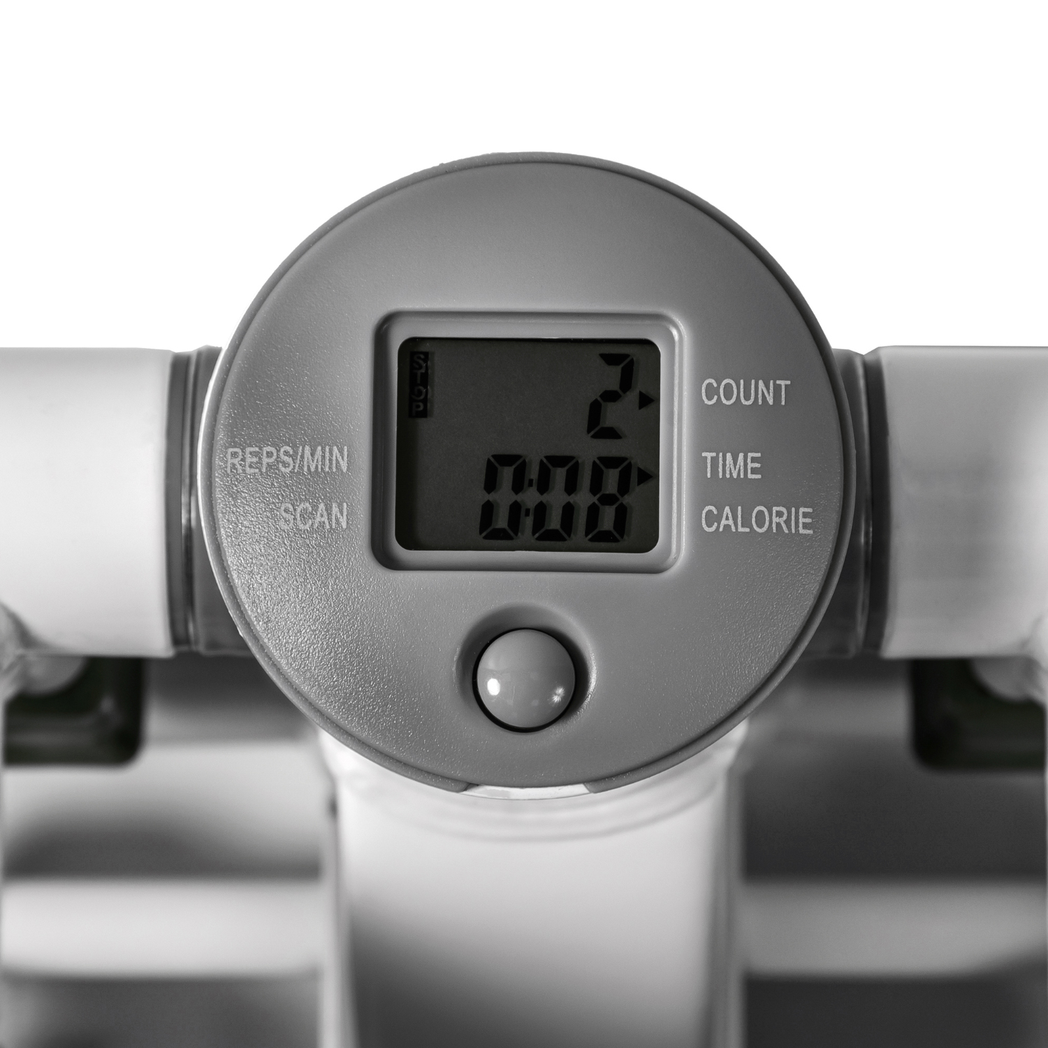 Показания компьютера: время, общее количество шагов за тренировку, ритм, шаг/мин, калории. Питание консоли от батарейки ААА 1,5В - входит в комплект.