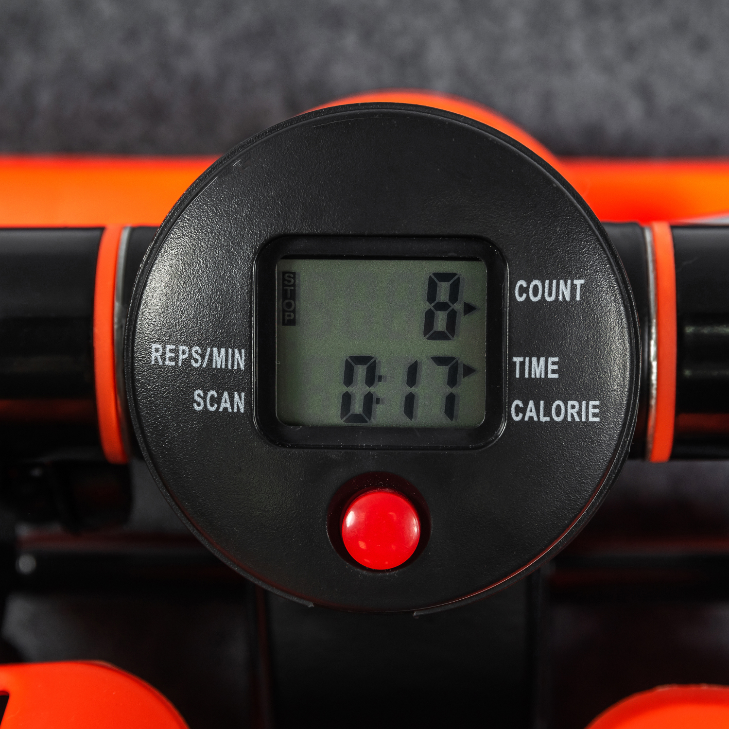 Дисплей, оснащенный ЖК-монитором, который работает от 1 батарейки типа ААА, 1.5В, входящей в комплект, и показывает следующие параметры тренировки: время, количество шагов, общее количество шагов и калории. Он может контролировать и записывать ваши данные, которые помогут планировать вашу следующую тренировку.