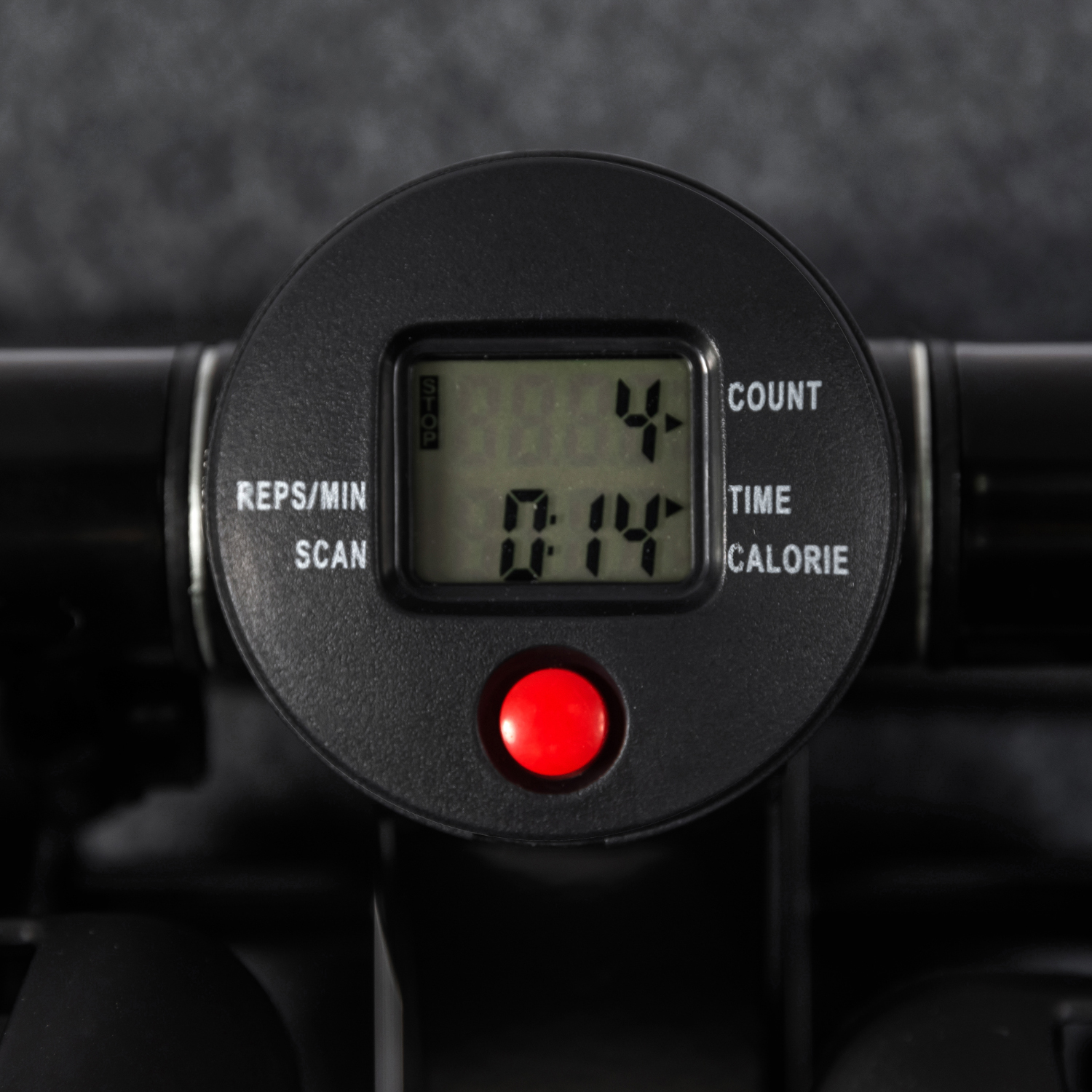 Дисплей, оснащенный ЖК-монитором, который работает от 1 батарейки типа ААА, 1.5В, входящей в комплект, и показывает следующие параметры тренировки: время, количество шагов, общее количество шагов и калории. Он может контролировать и записывать ваши данные, которые помогут планировать вашу следующую тренировку.