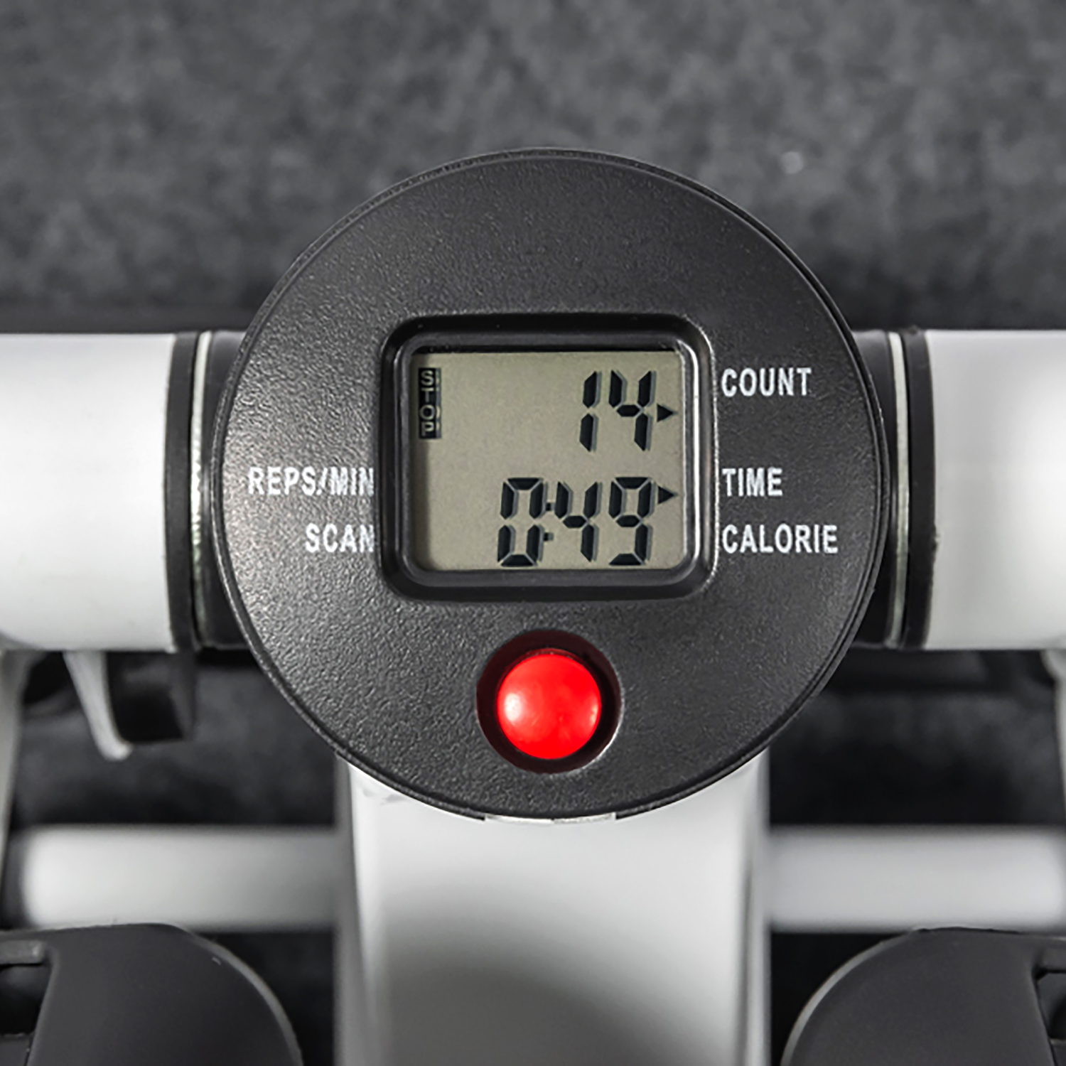 Дисплей, оснащенный ЖК-монитором, который работает от 1 батарейки типа ААА, 1.5В, входящей в комплект, и показывает следующие параметры тренировки: время, количество шагов, общее количество шагов и калории. Он может контролировать и записывать ваши данные, которые помогут планировать вашу следующую тренировку.