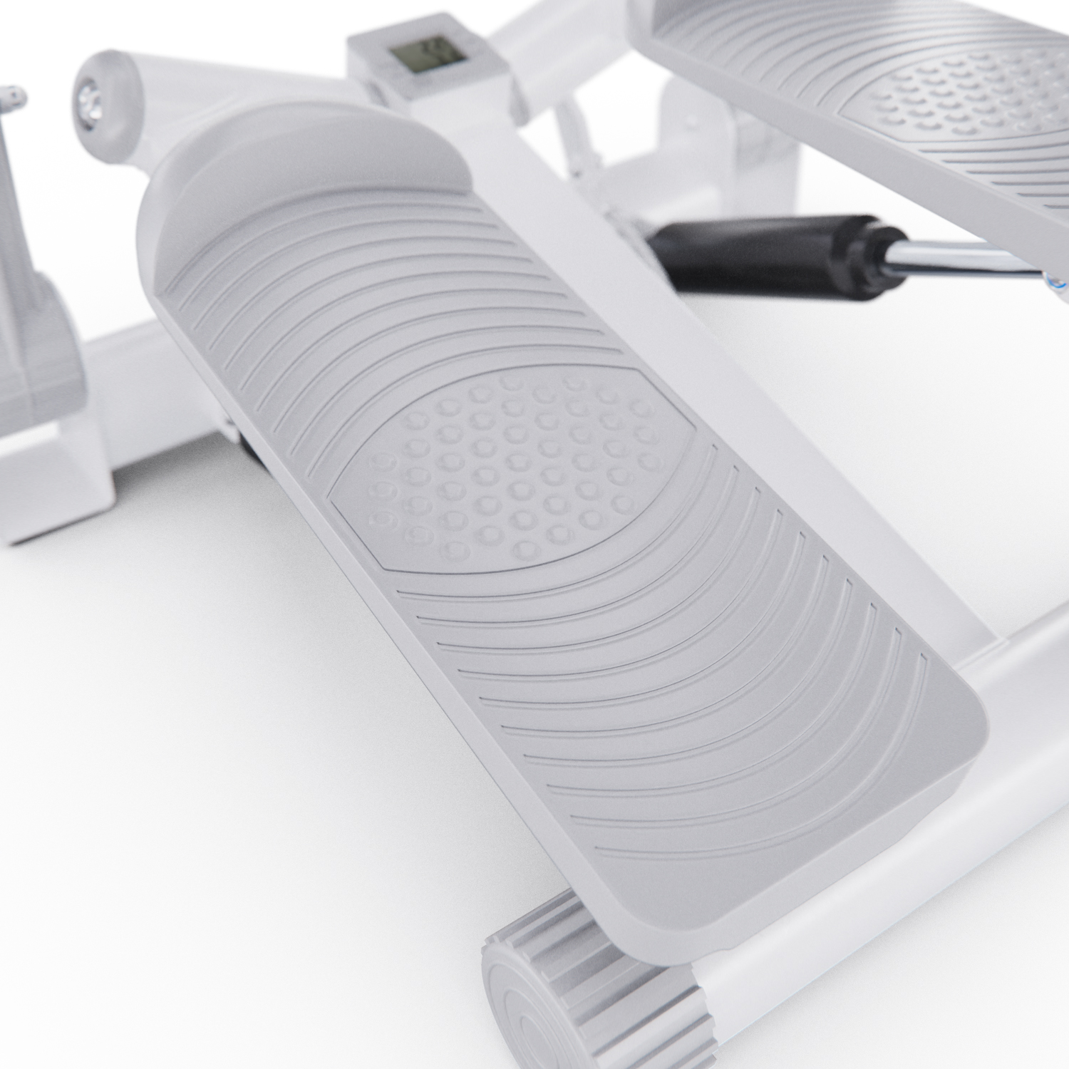 Система нагрузки гидравлическая, с взаимозависимым ходом педалей, что обеспечивает равномерное распределение нагрузки на ноги. Регулировка нагрузки механическая, осуществляется поворотом ручки регулятора. Расстояние между поручнями составляет 45,4 см.