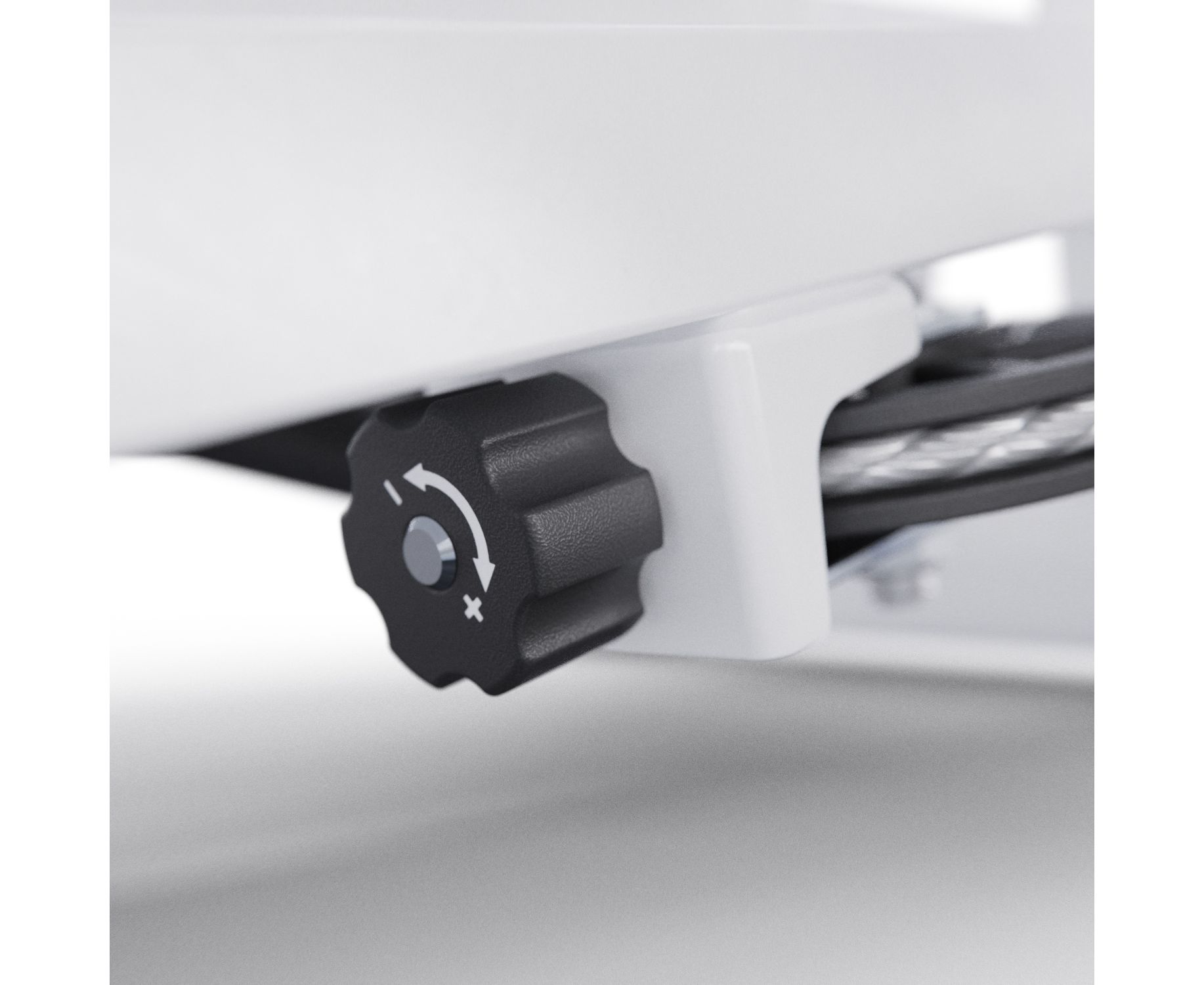 Система нагрузки гидравлическая, с взаимозависимым ходом педалей, что обеспечивает равномерное распределение нагрузки на ноги. Регулировка нагрузки механическая, осуществляется поворотом ручки регулятора. Расстояние между поручнями составляет 45,4 см.